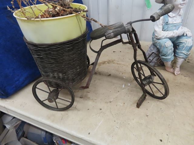 Bicycle Planter, 4 Plastic Yard Ornaments Tallest is 22"