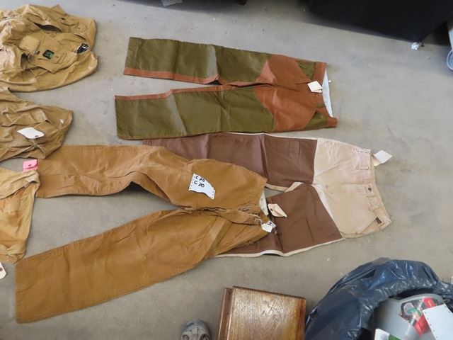 Big Ben Jacket Size 28, Caliber Sportsman Jacket XXL, 3 Hunting Pants, Size 30, 3 Vests - Medium, Seems Like New Old Stock