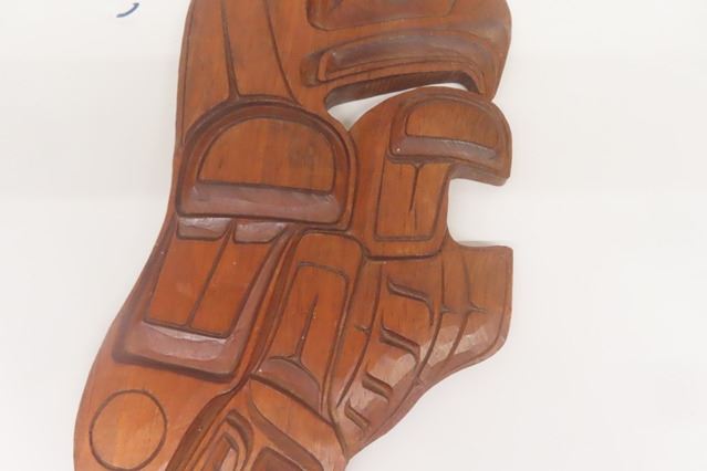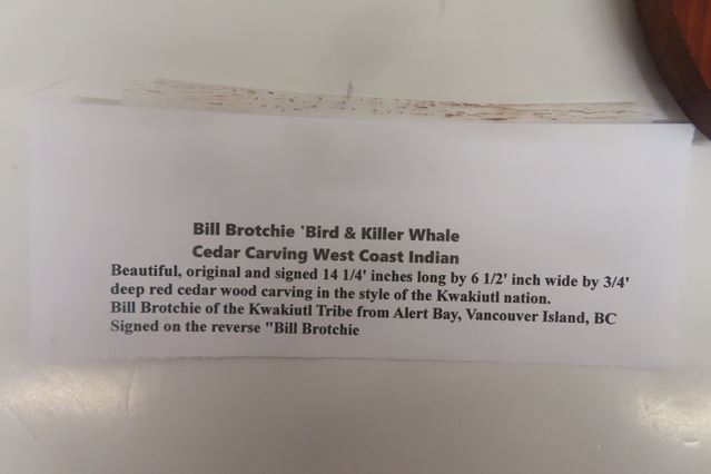 Bill Brotchie ' Bird & Killer Whale' Cedar Carving, West Coast Indian Signed 14.25" Long 6.5" Wide 3/4" Deep
