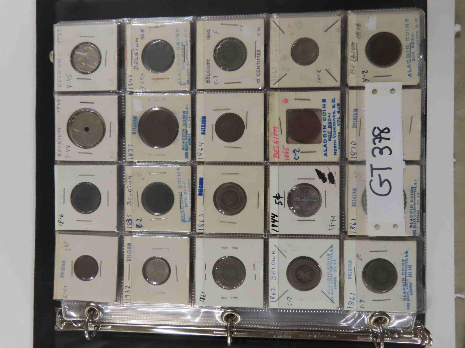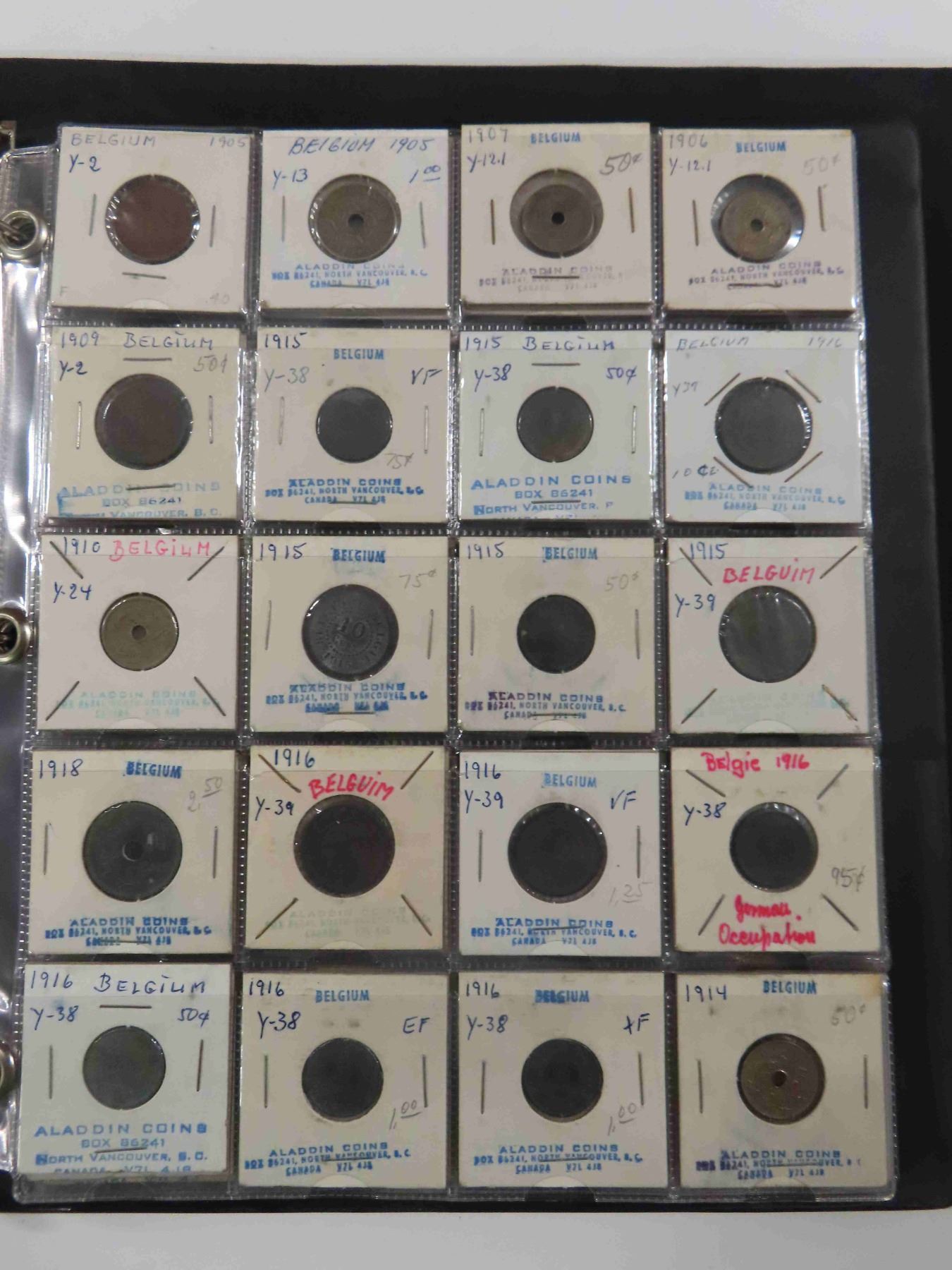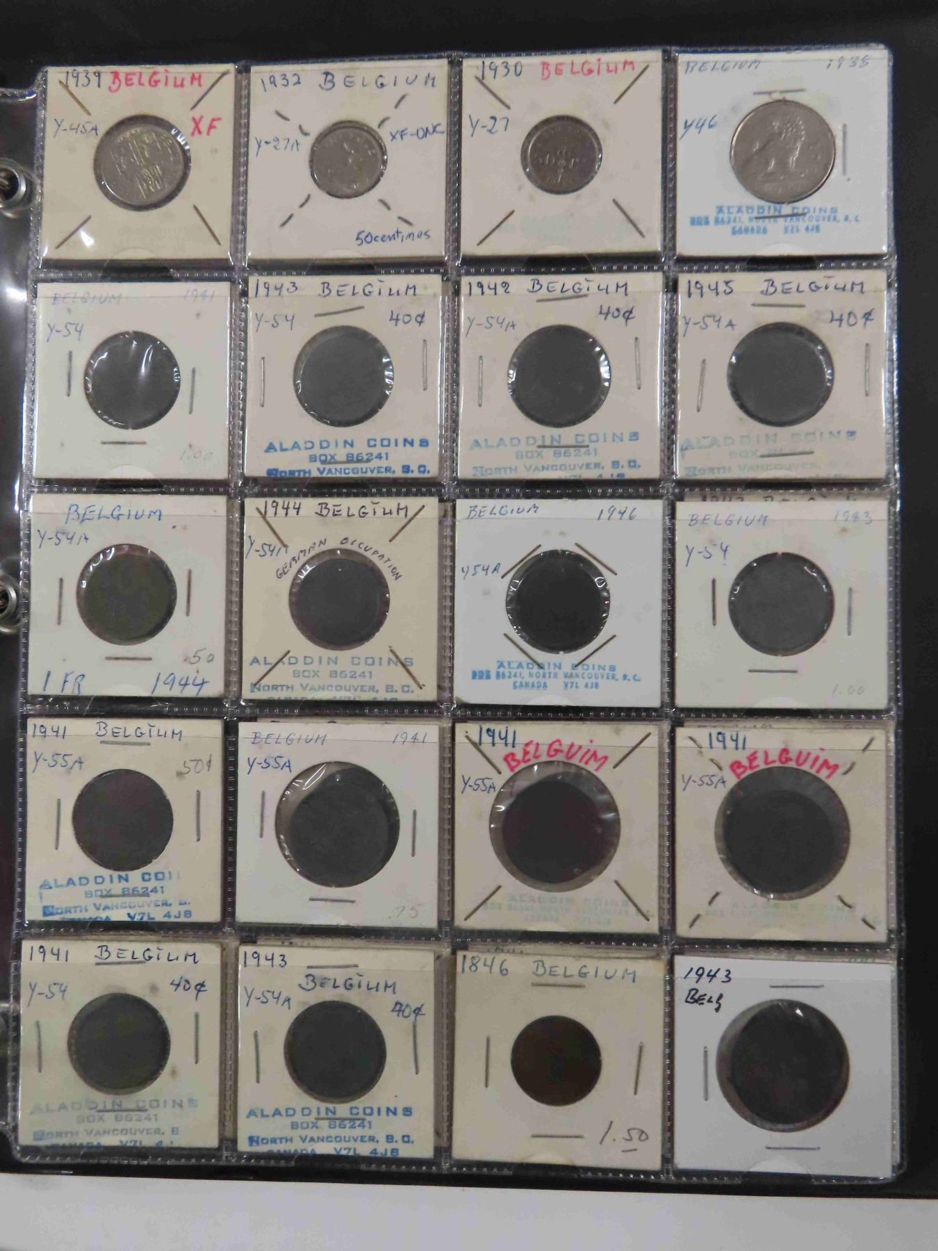 Binder with Approximately 120 Coins From Belgium 1816 and Up - Lots of Interesting Coins, Some with Holes