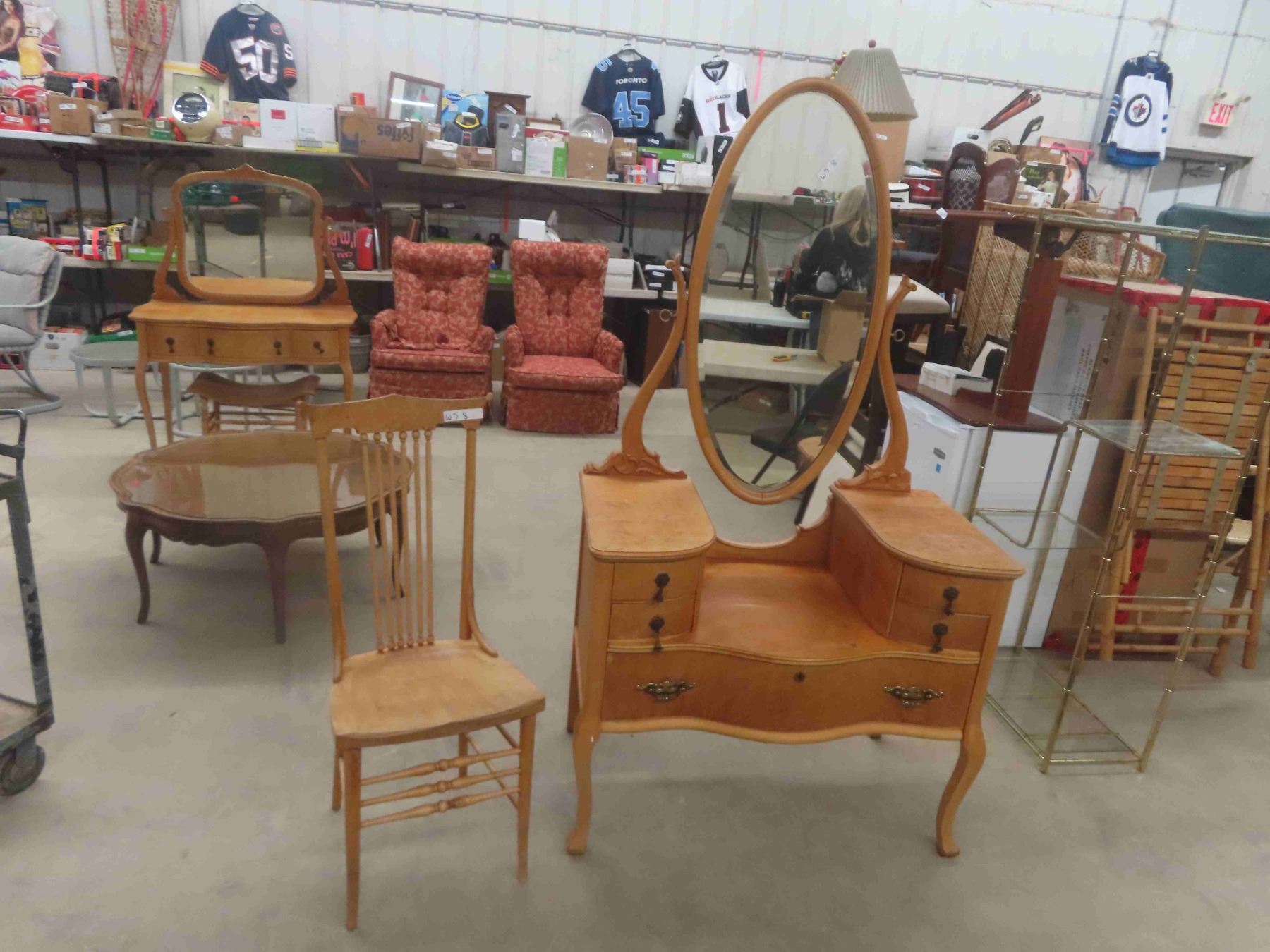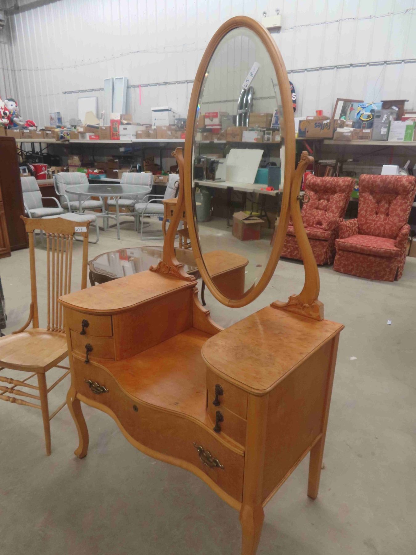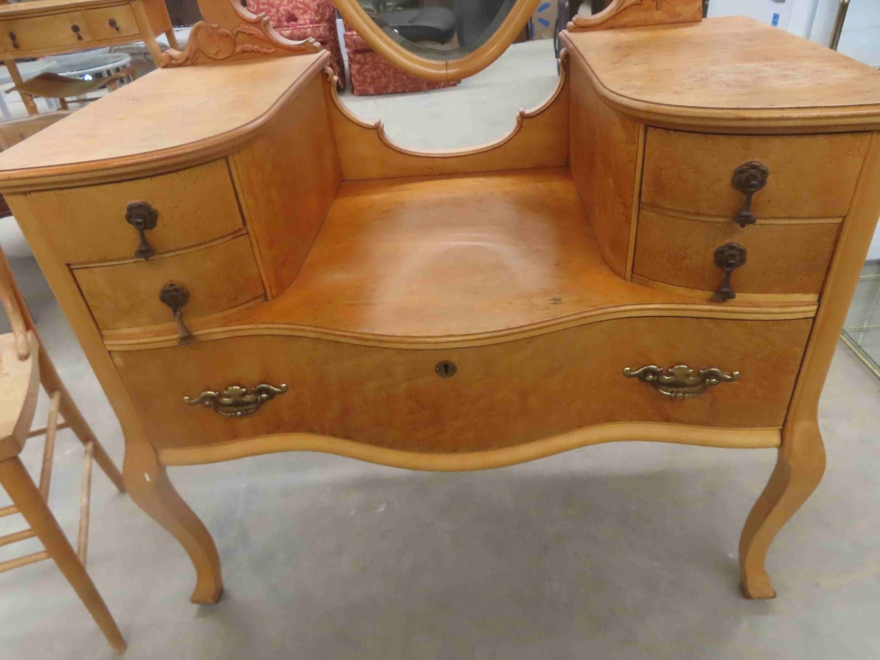 Birds Eye Maple Vanity with Chair - Total Height 70" x 38.5" x 21"