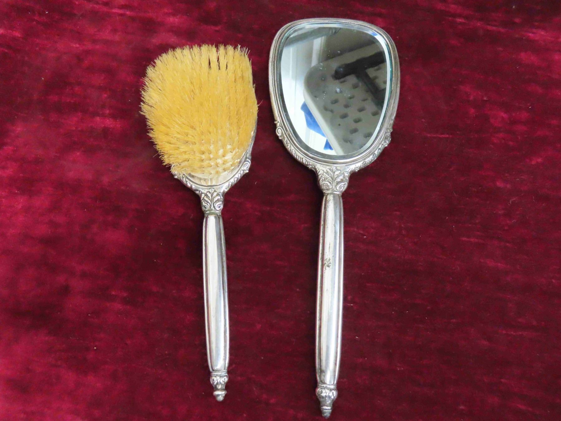 Birks Sterling Dresser Set Mirror and Brush 1950 1847 Rogers Bros, Chest of 28pcs of 'Daffodil' Pattern Silverware Flatware