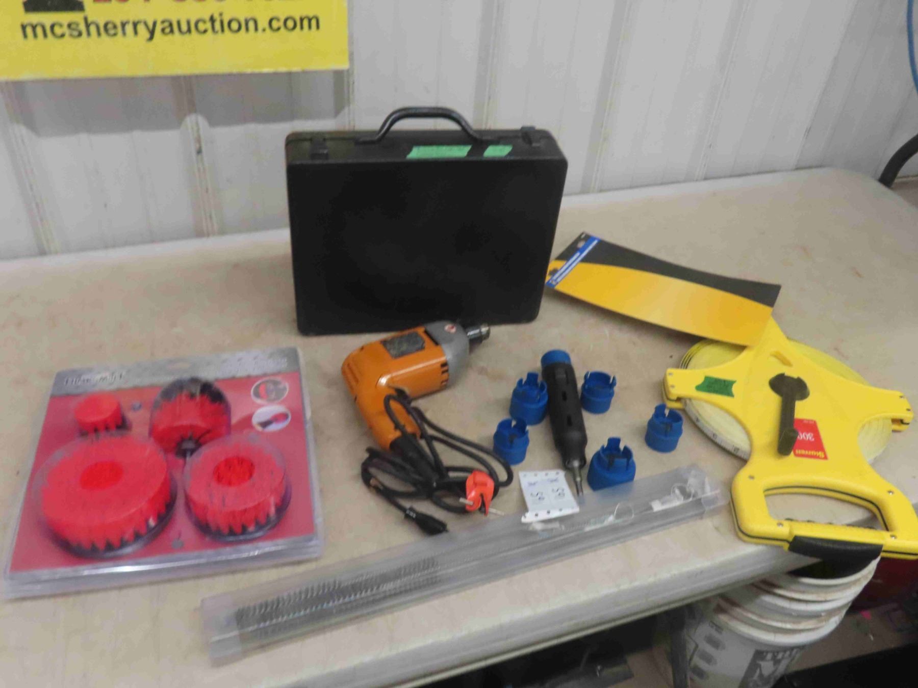 Black + Decker Drill - 3 amp, New 4pc Power Drill Brush Set, Wire Brushes, Wheel Stud Cleaner Tool, Starrett 300' Tape Measure
