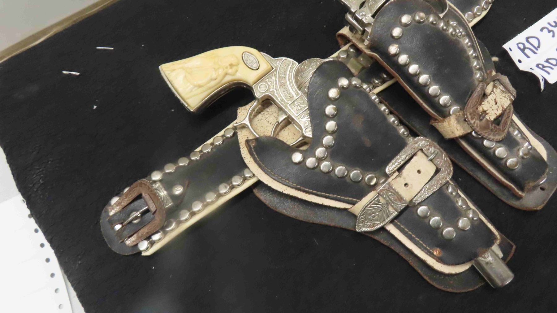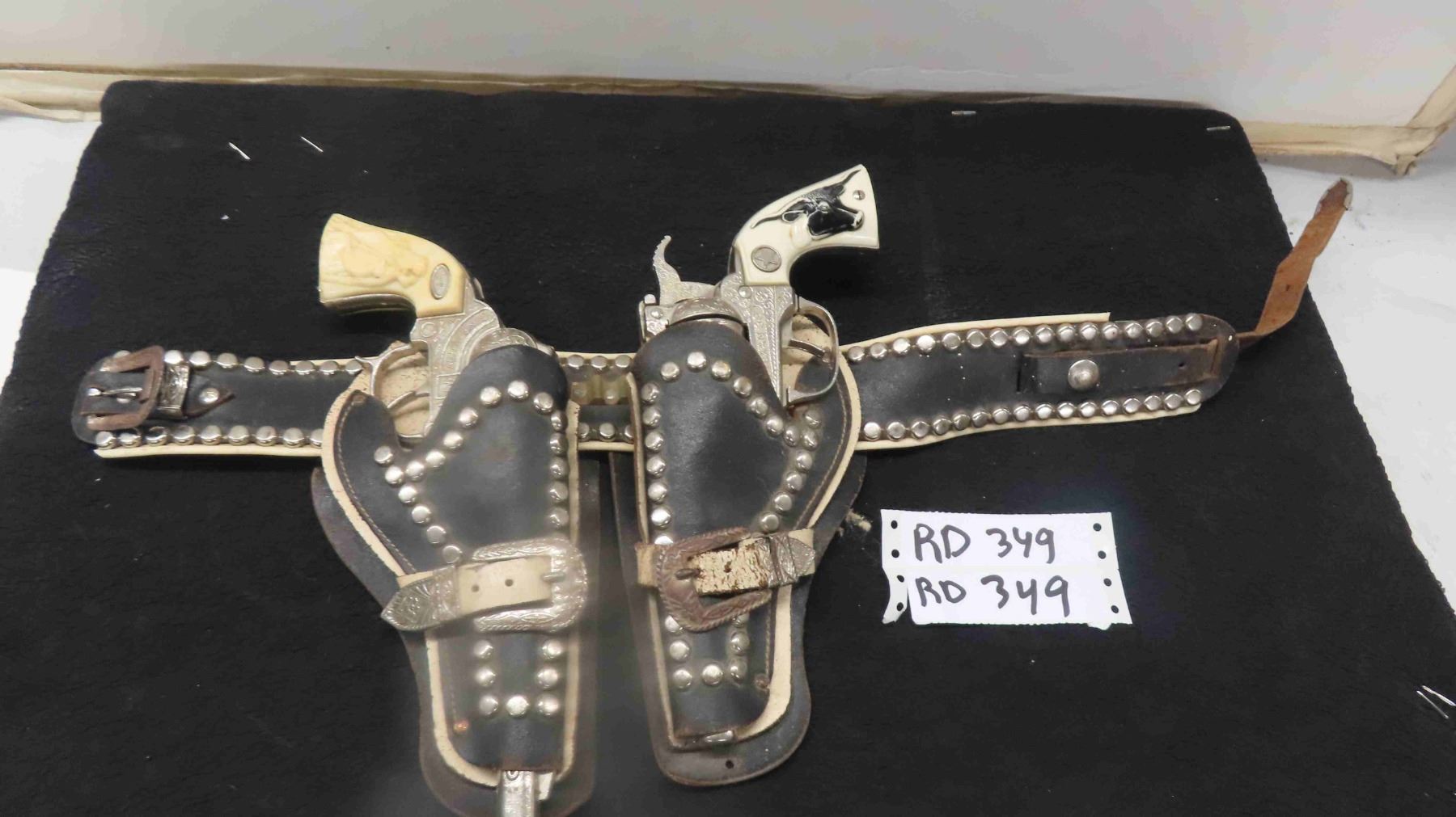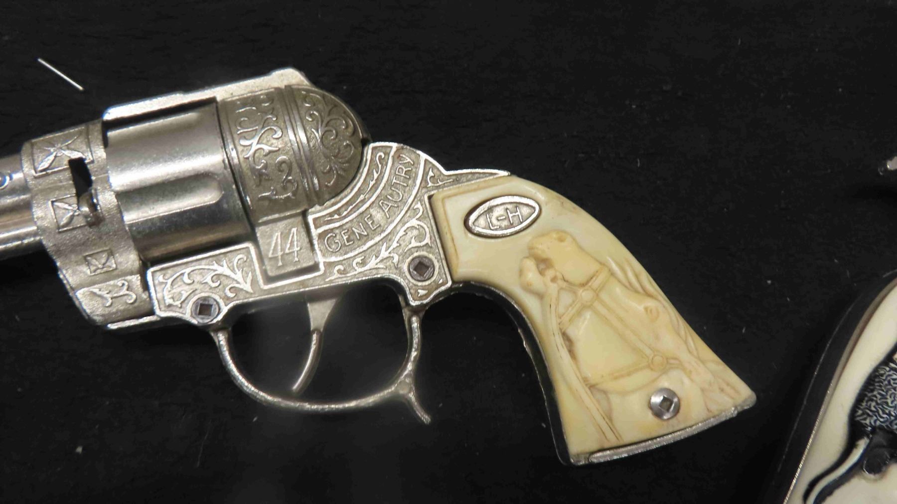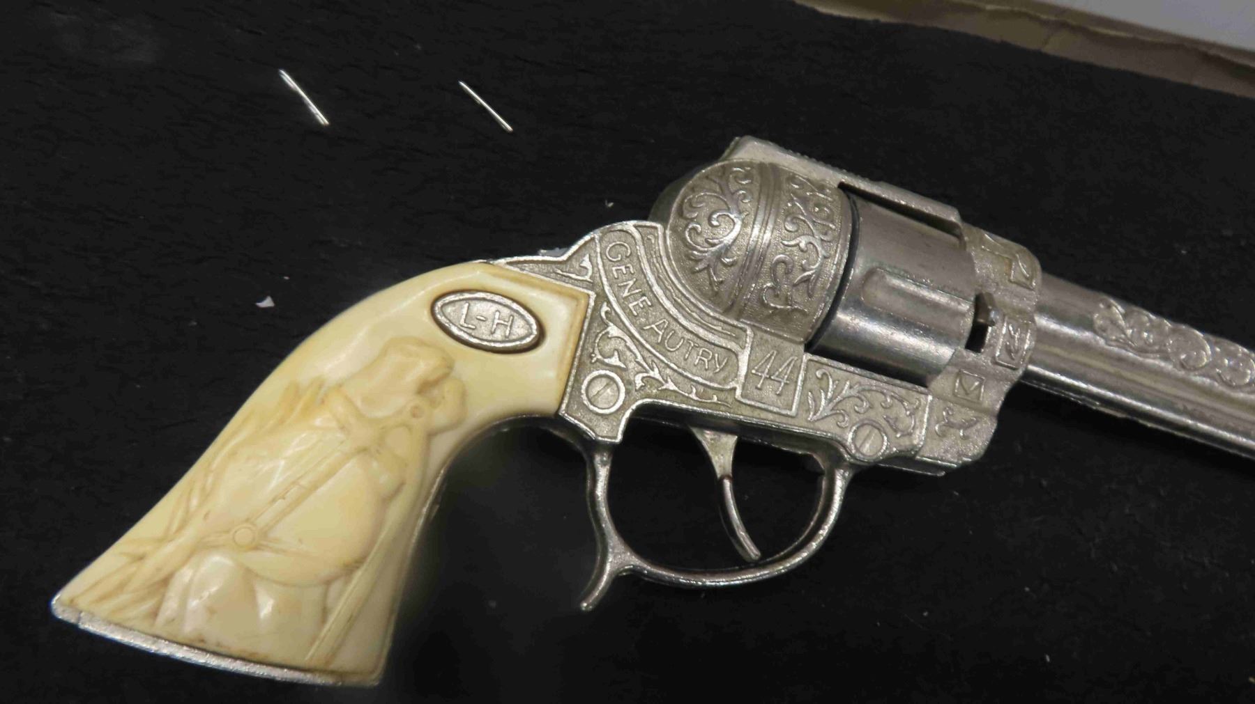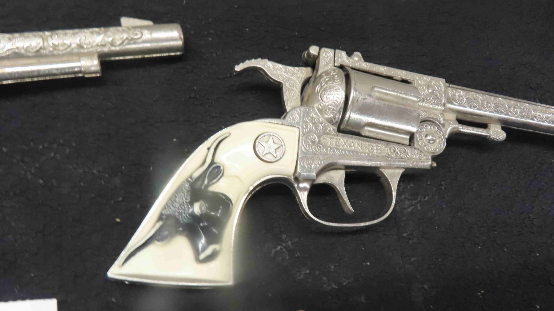Black Holster with 1 Texan 38 + 1 Gene Autry Cap Guns