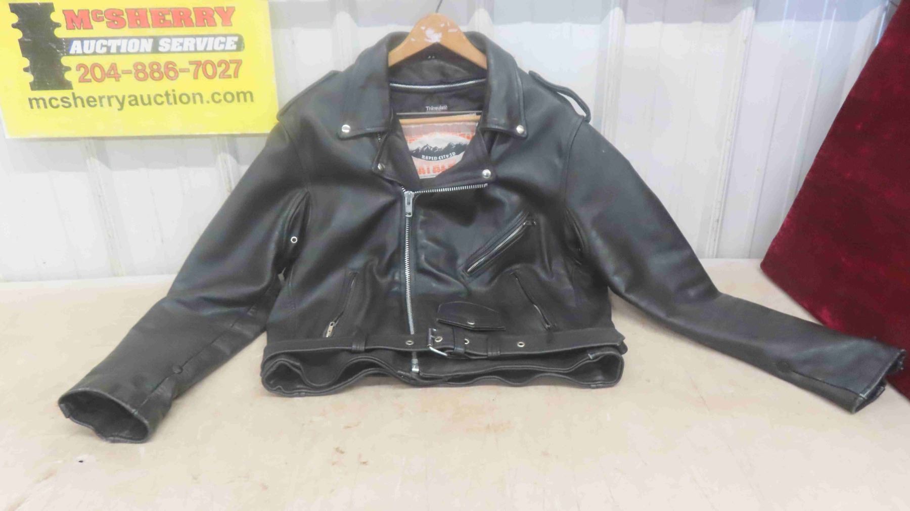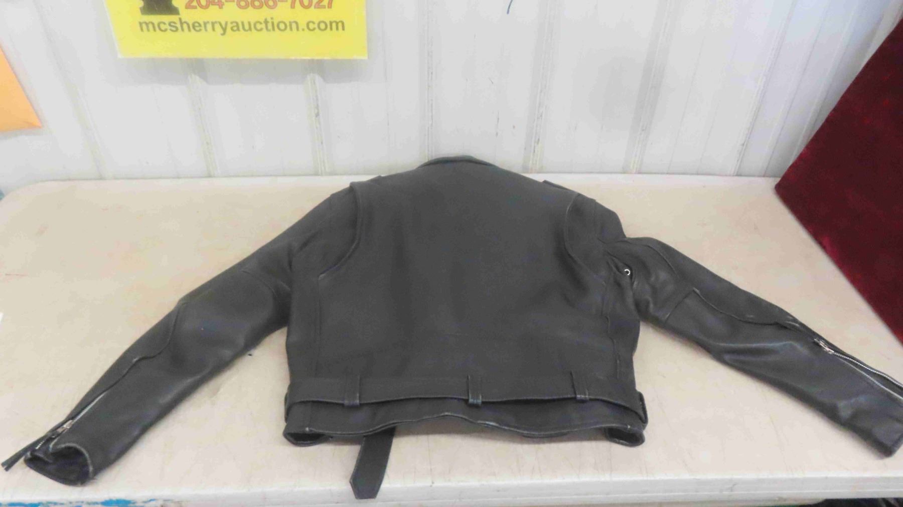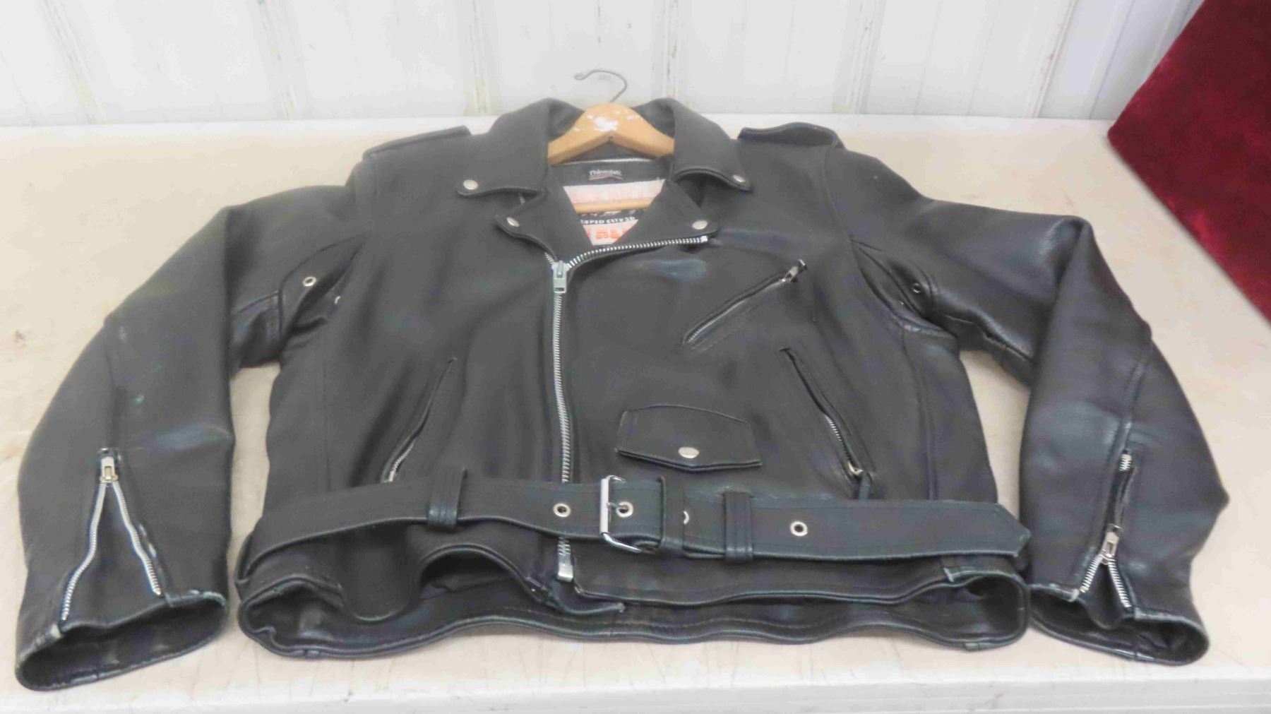 Black Leather Motorcycle Jacket Size 44
