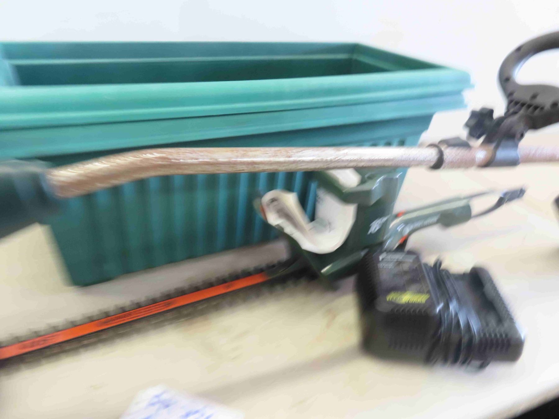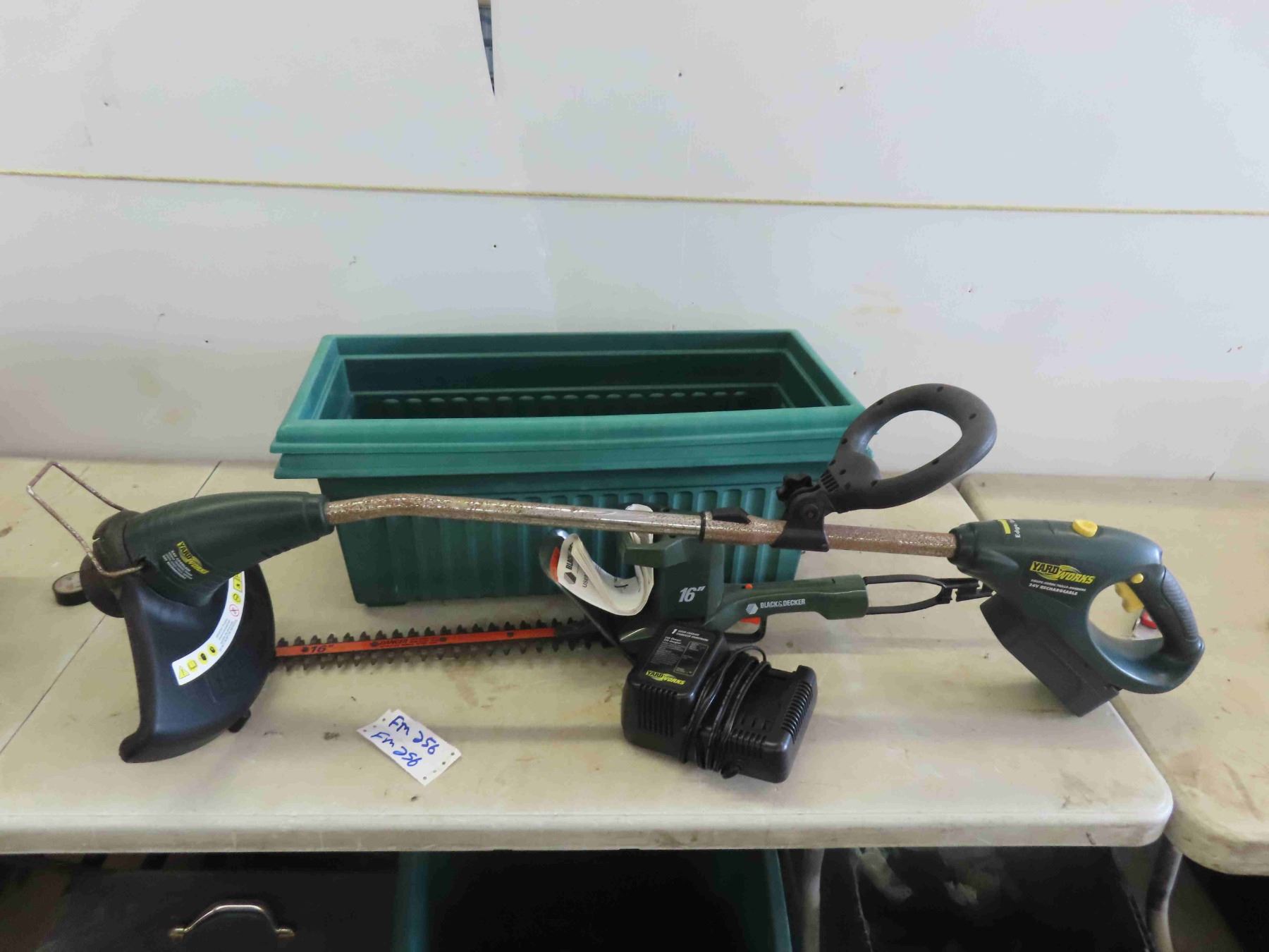 Black and Decker 16'' Hedge Trimmer, 2 Planters 12'' x 26'' x 12'' , 24V Weed Eater with Battery and Charger