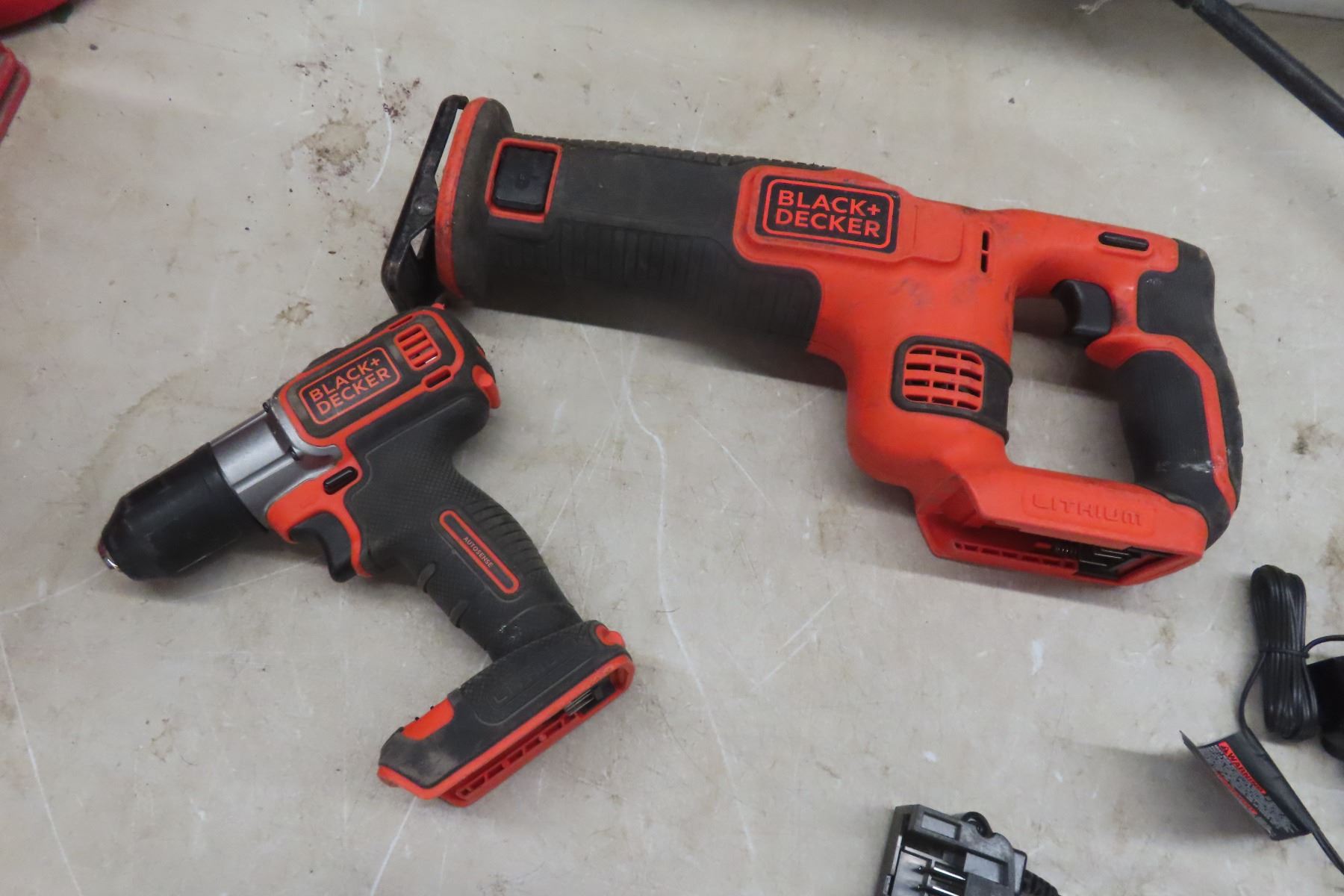 Black and Decker 20V Cordless Recip Saw, Drill, 2 Chargers, Batteries and Chapin Backpack Sprayer - Uses the Same Battery