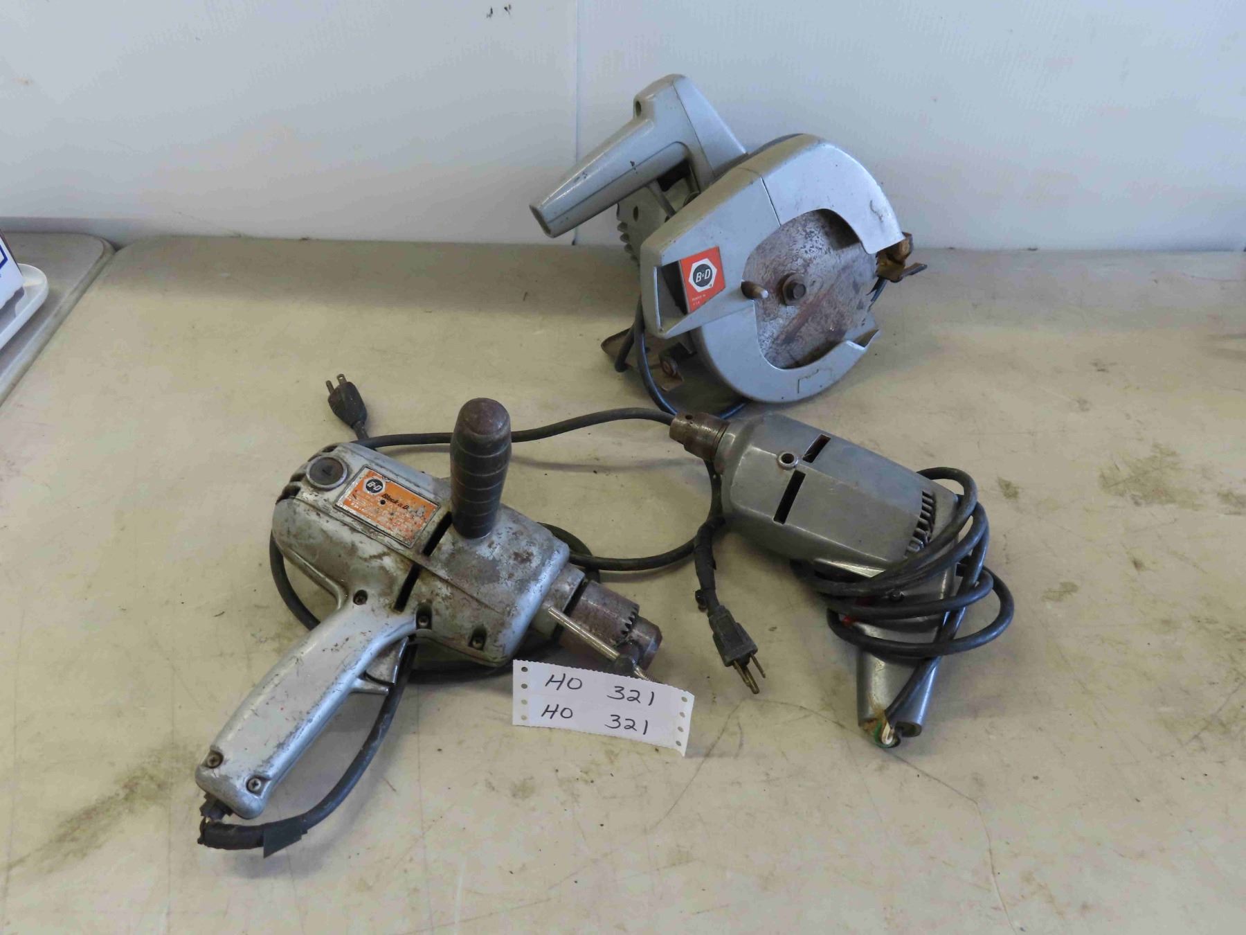 Black and Decker Power Tools: 7 1/4'' Circular Saw, 3/8'' Drill, 1/2'' Drill