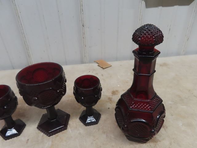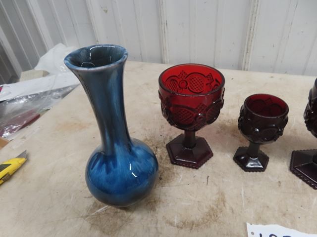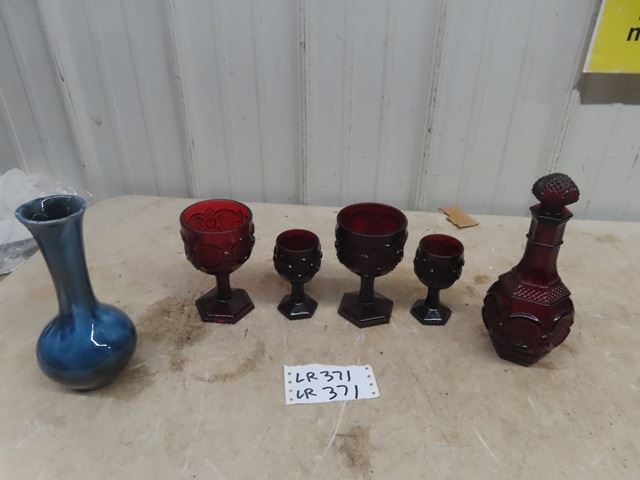 Blue Mountain Vase & Avon Cape Cod Decanter & Goblets