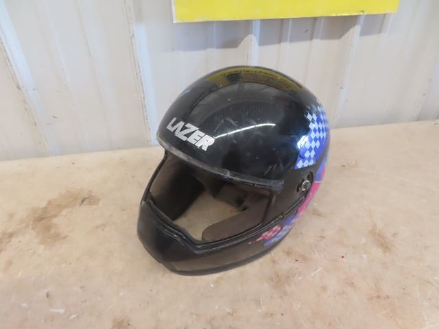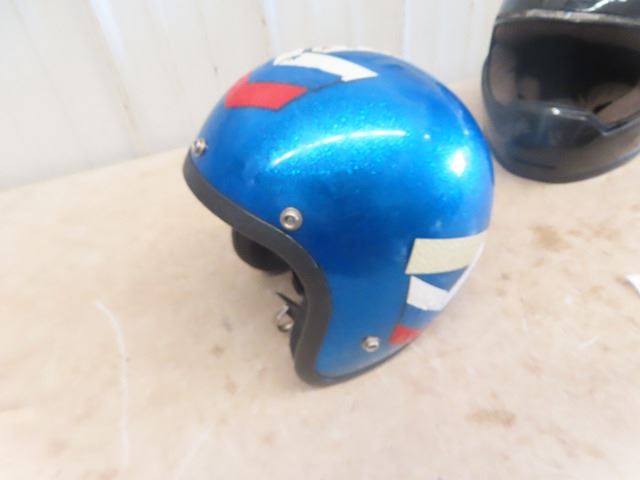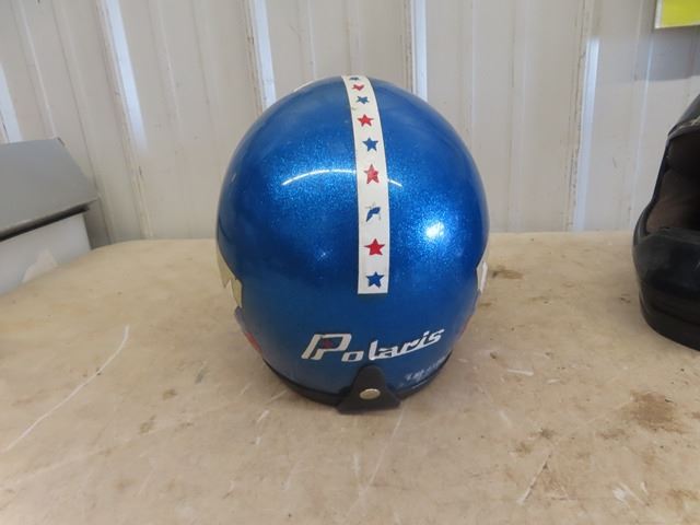 Blue Sparkle Snowmobile Helmet with Polaris Decals & LAzer Snowmobile Helmet