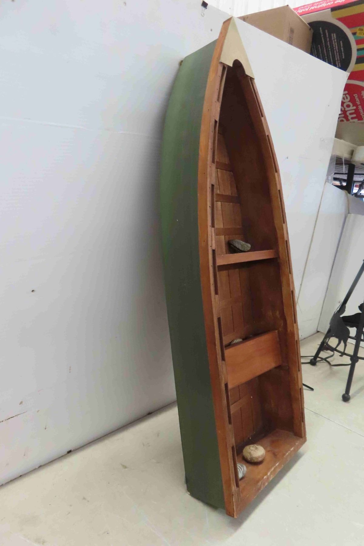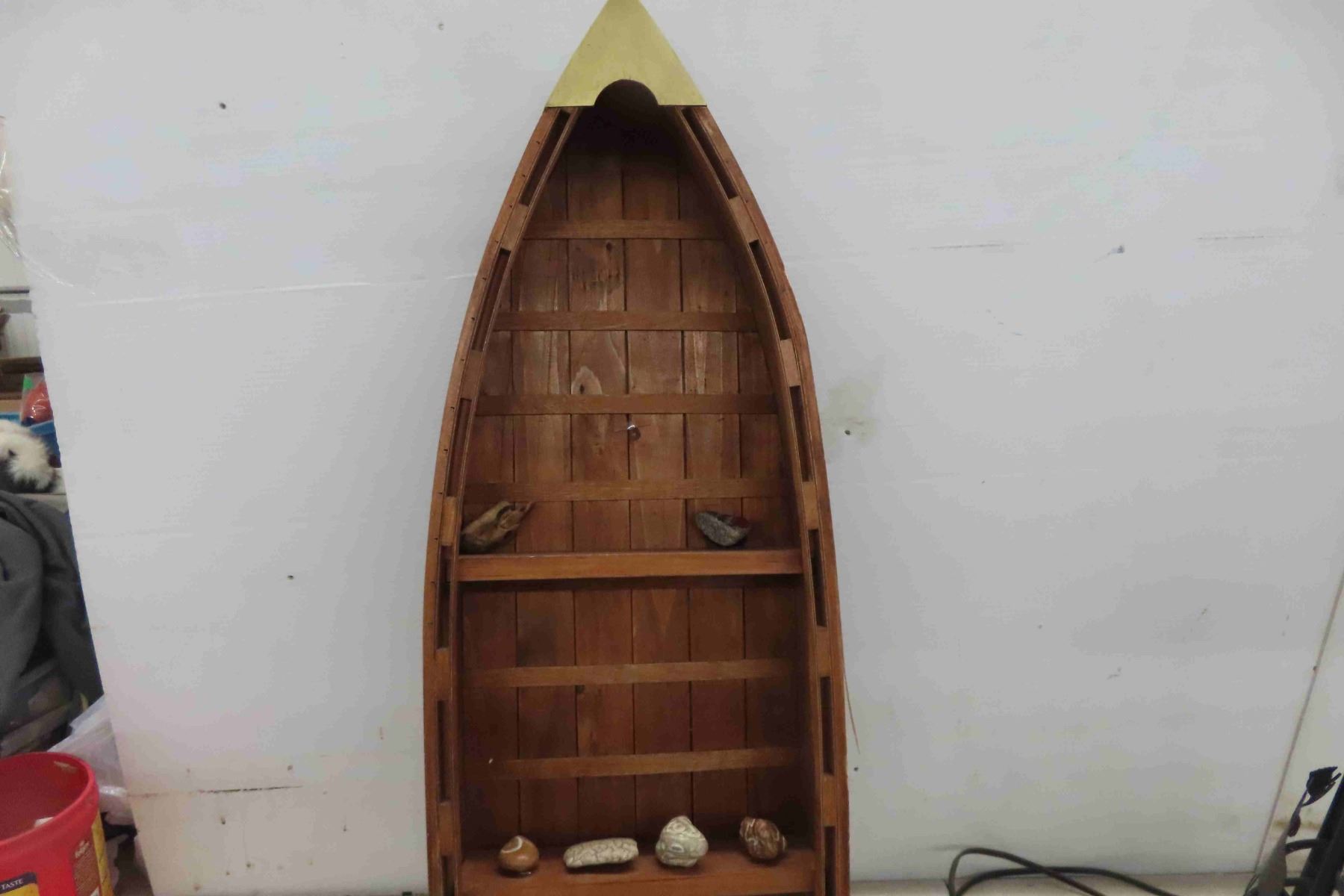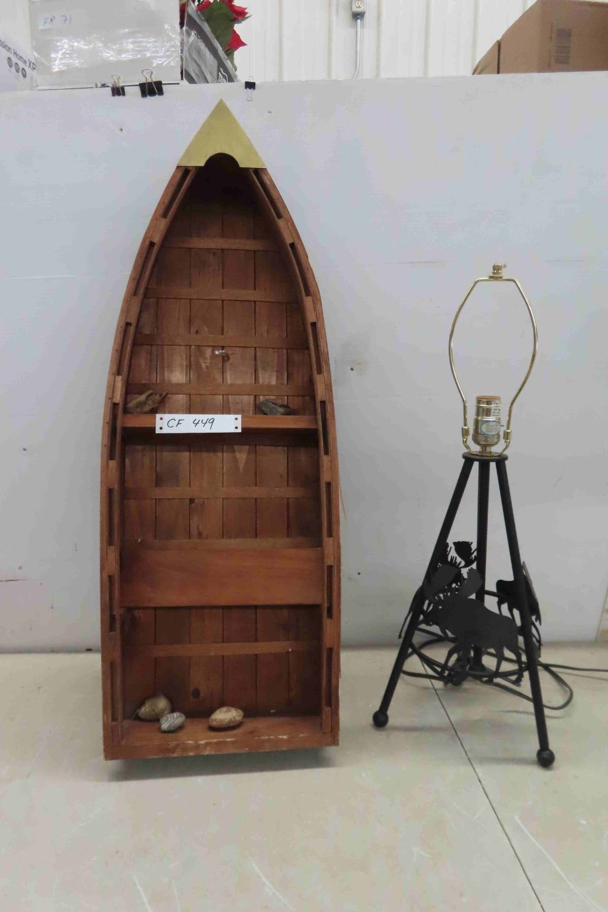 Boat Shaped Shelf 33  x 12 x 4.5  & Metal Laser Cut Moose Table Lamp 25  No Shade