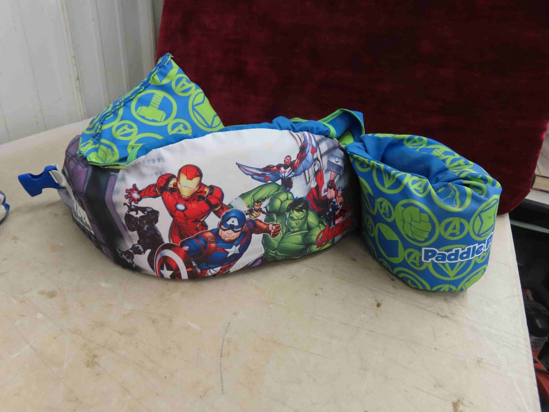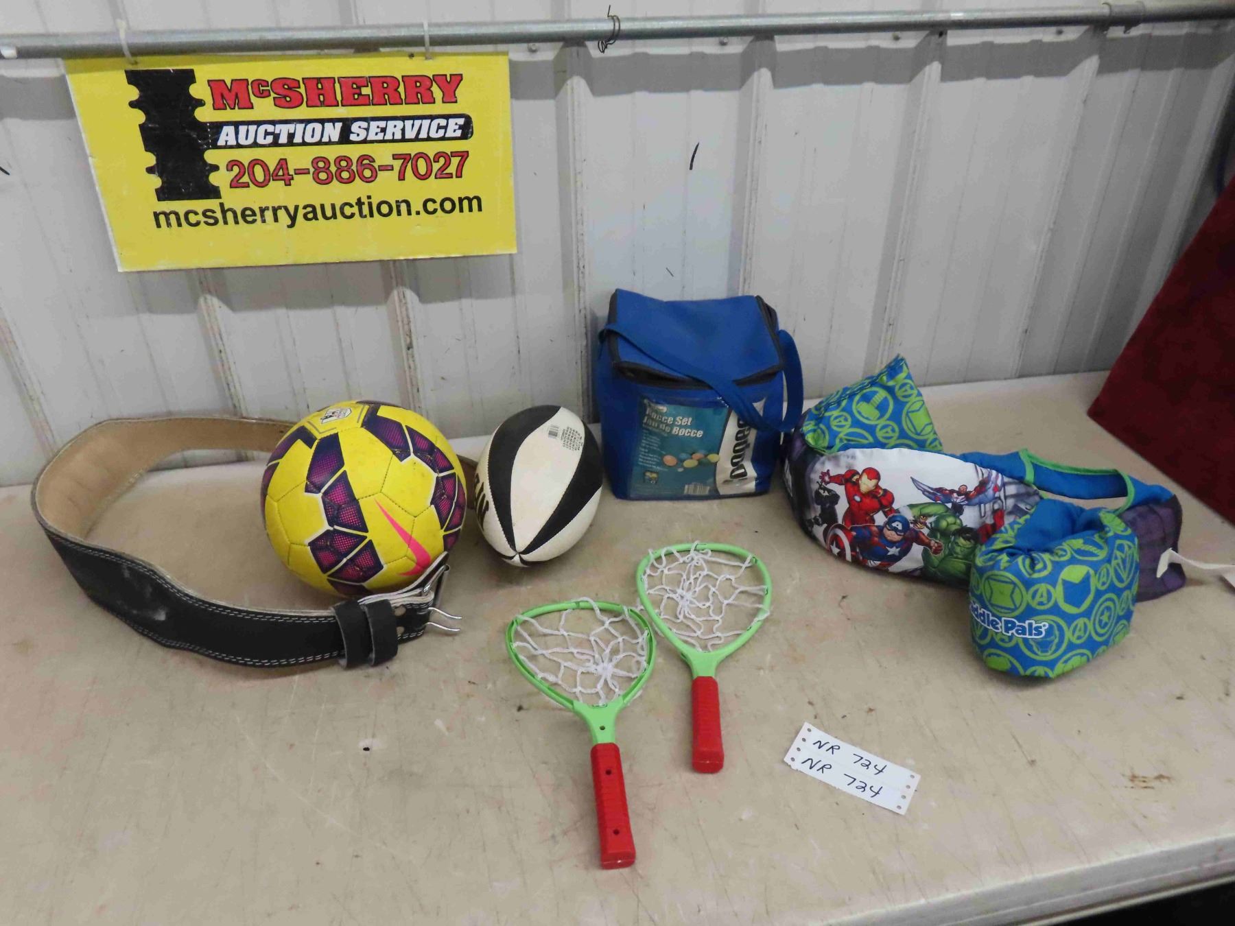 Bocce Set, Football, Soccer Ball, Avengers, Childs Floatation Device, Weight Lifting Belt