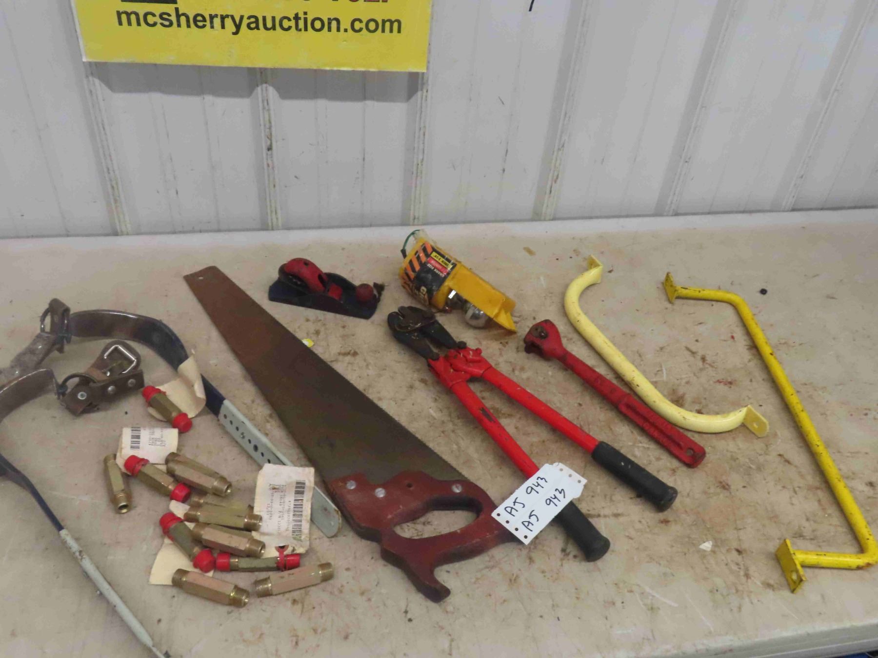 Bolt Cutter, Climbing Spurs, New 2'' Ball Hitch, Hand Planer, Saw, 2 Handles, Plus