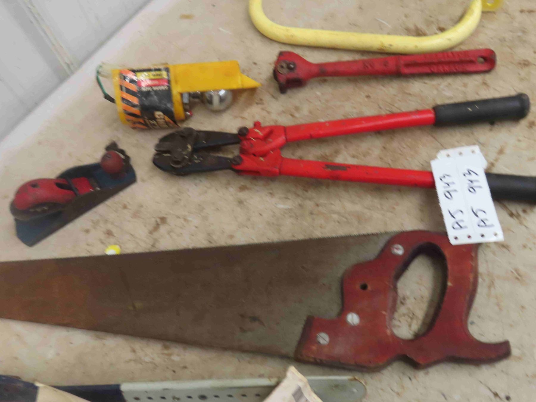 Bolt Cutter, Climbing Spurs, New 2'' Ball Hitch, Hand Planer, Saw, 2 Handles,
