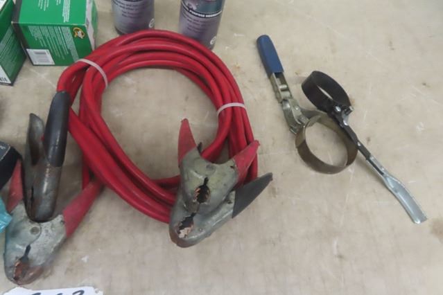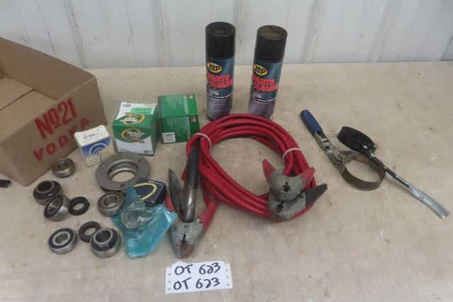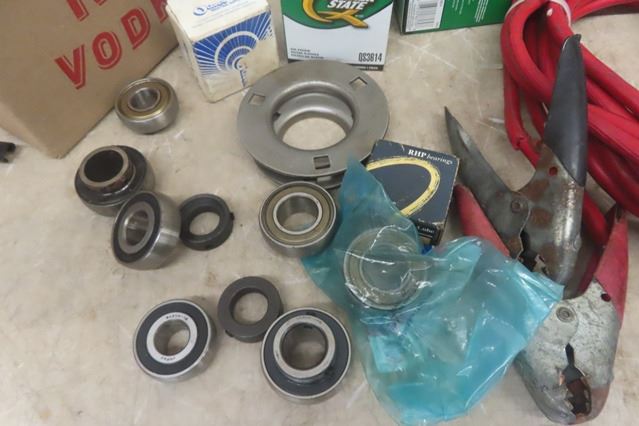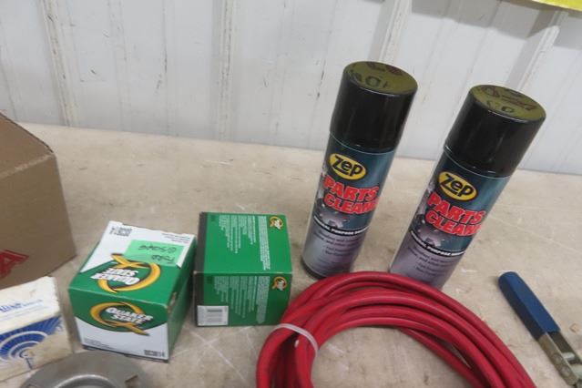 Booster Cables, Bearings, Filter Wrench, 2 New Cans of Parts Cleaner, 2 Ford Cap Filters