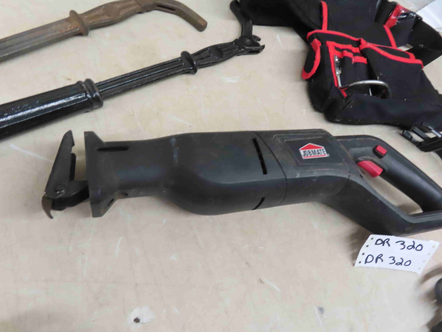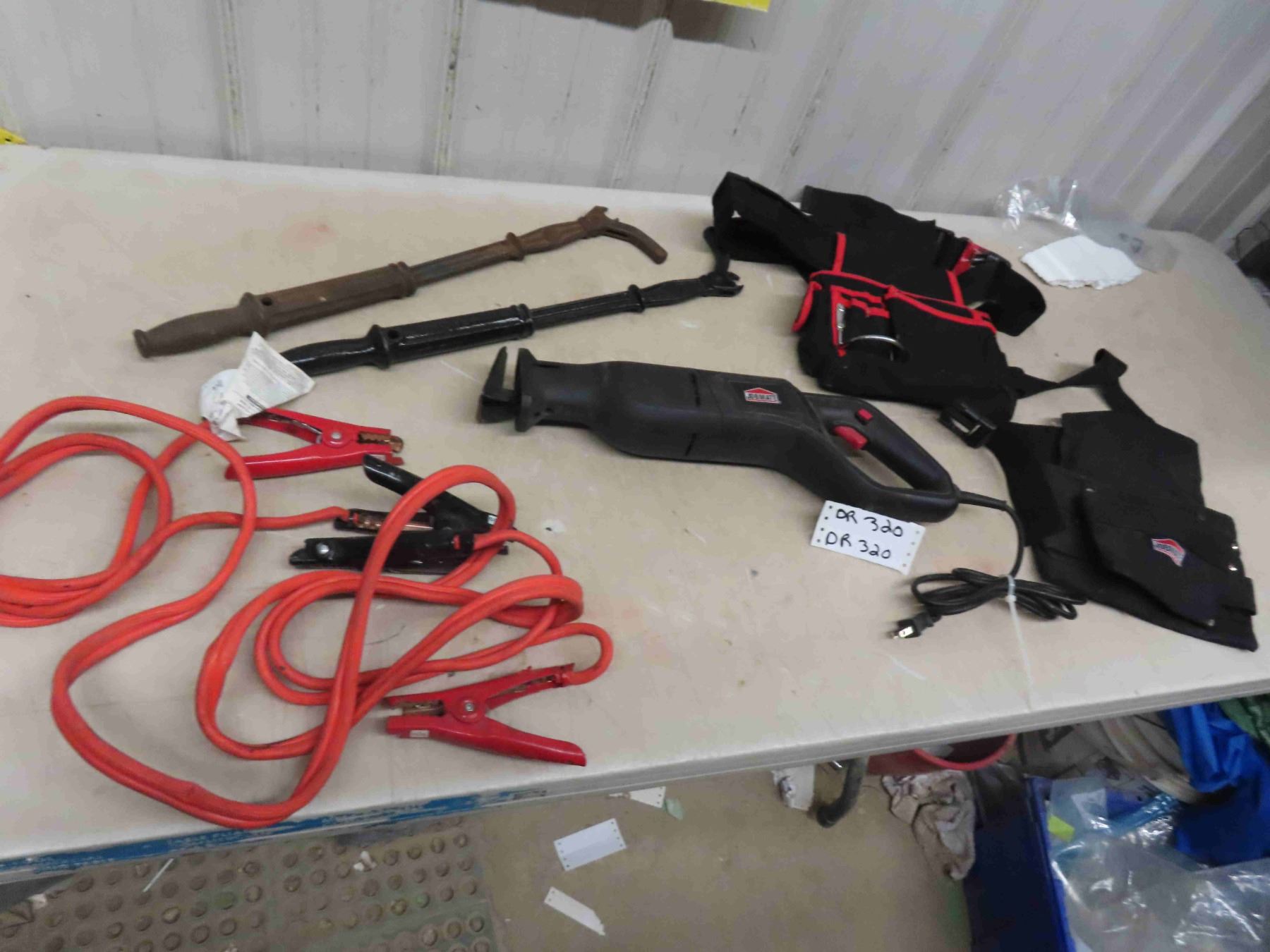 Booster Cables, Jobmate Power Reciprocating Saw, 2 Nail Pullers, 2 Tool Pouches