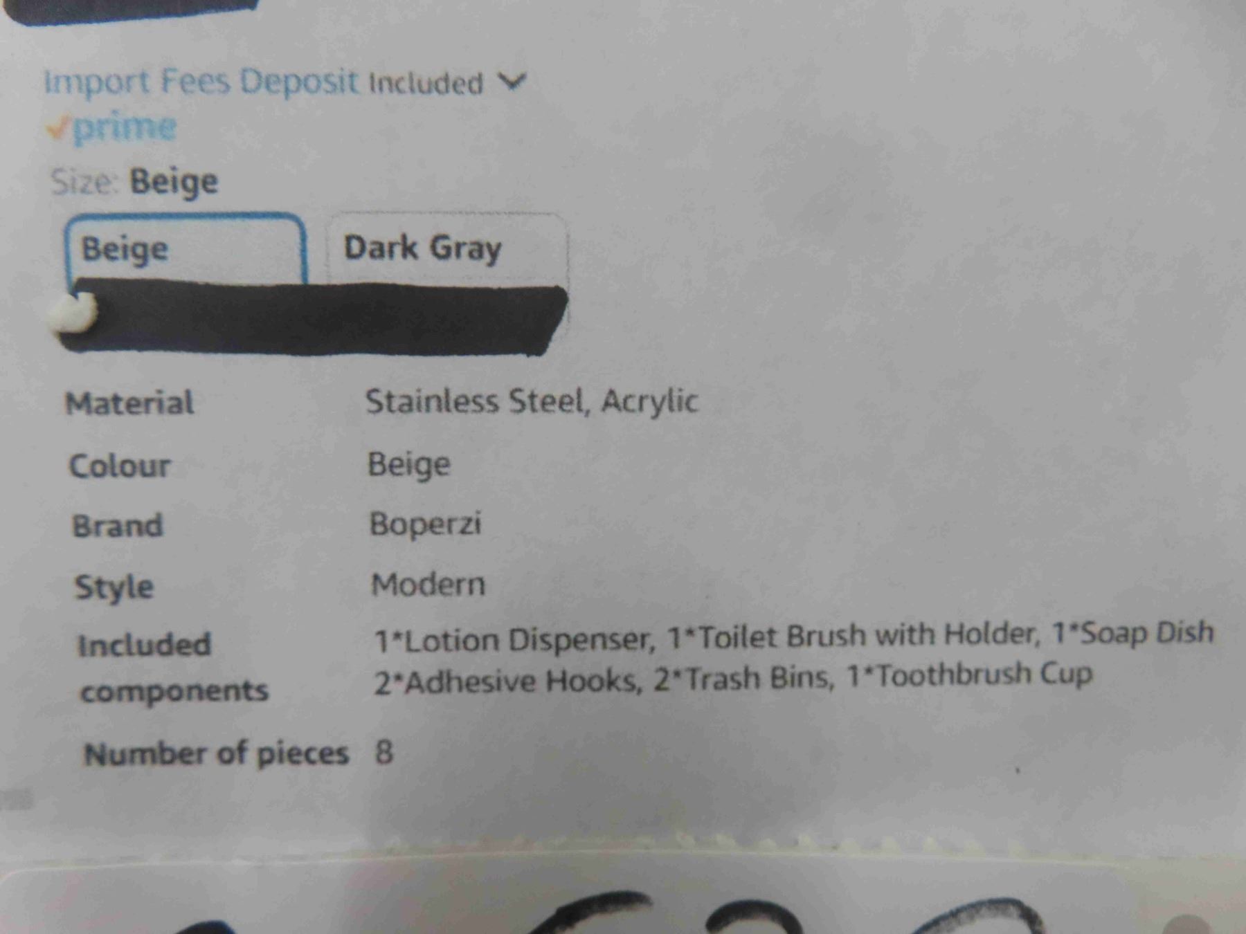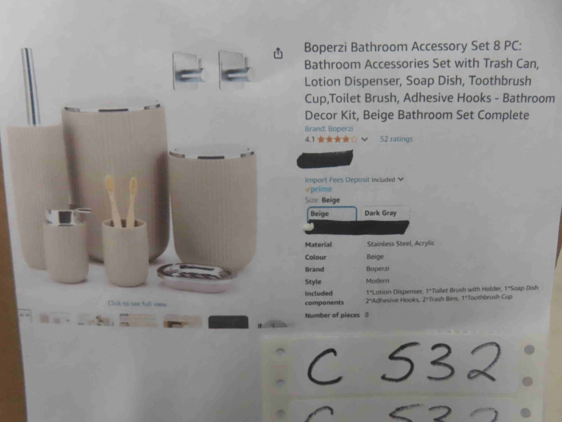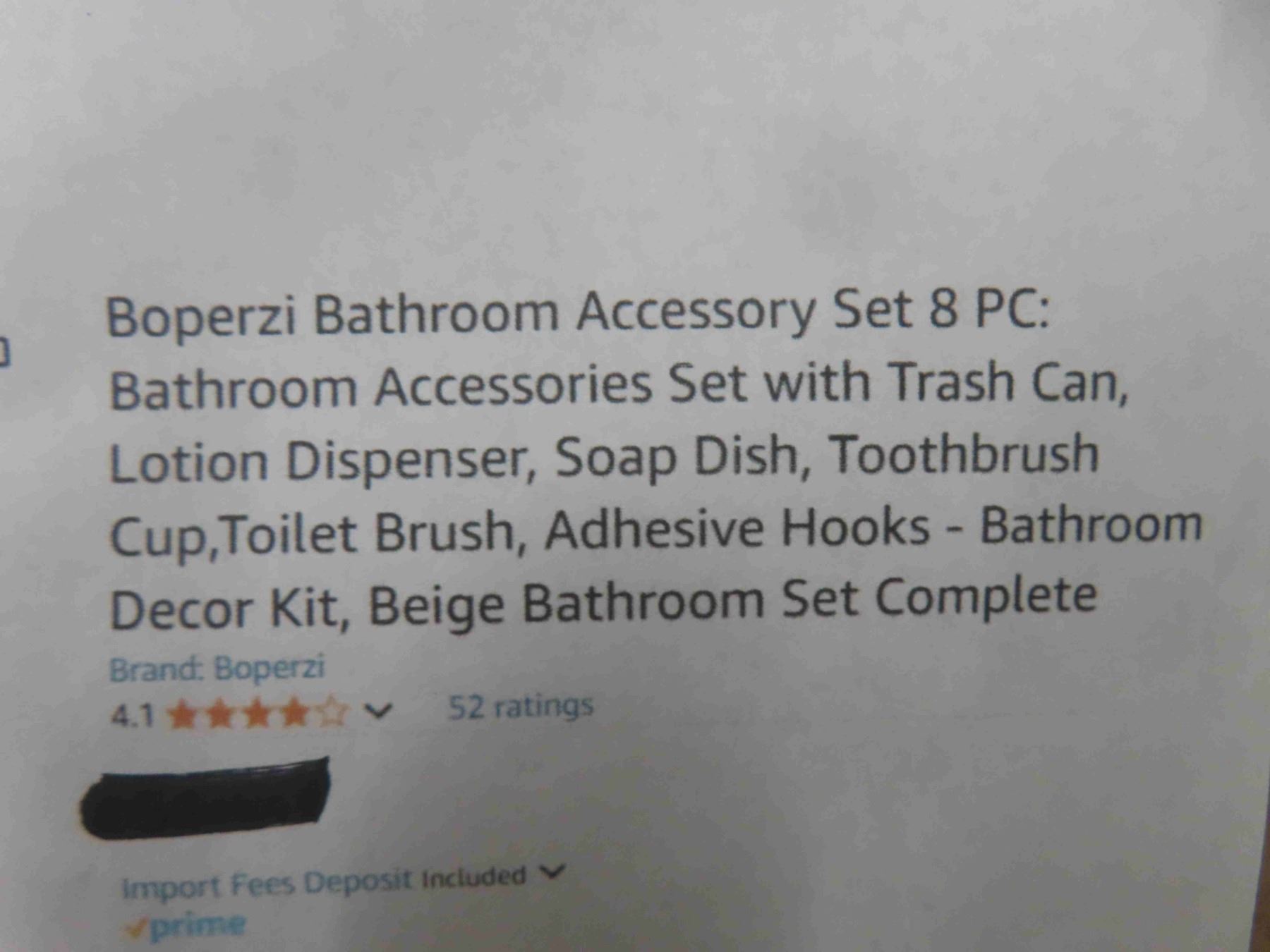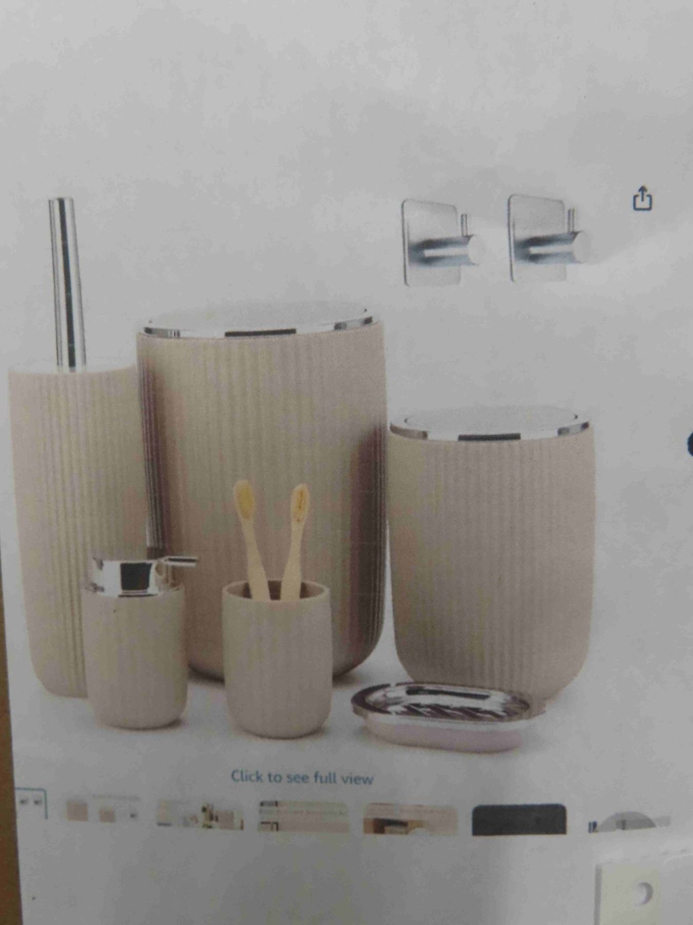 Boperzi Bathroom Accessory Set 8 PC: Bathroom Accessories Set with Trash Can, Lotion Dispenser, Soap Dish, Toothbrush Cup,Toilet Brush, Adhesive Hooks - Bathroom Decor Kit, Beige Bathroom Set Complete - New or Store Return