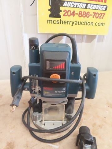 Bosch Model 1613EUS Router with Guide , some Bits & Fitted Wooden Case