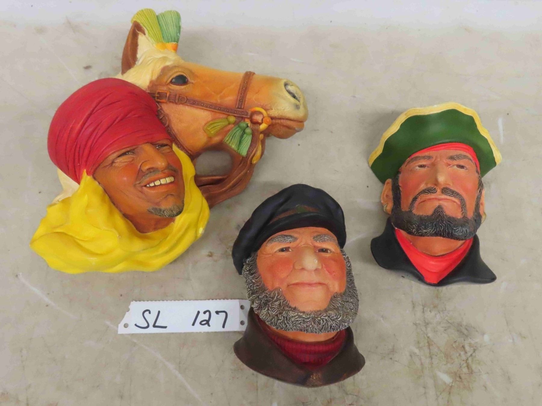Bossons England Lot : Boatman Captain 1984, Captain Morgan 1983, Rare Large ''Lords of the Deser'' Sheik & Arabian Horse 1984 - All Very Good Condition