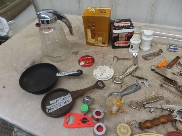Bottle Openers, Pick a Pop Stopper, Cast Frying Pan, Moo Cow Creamer plus more