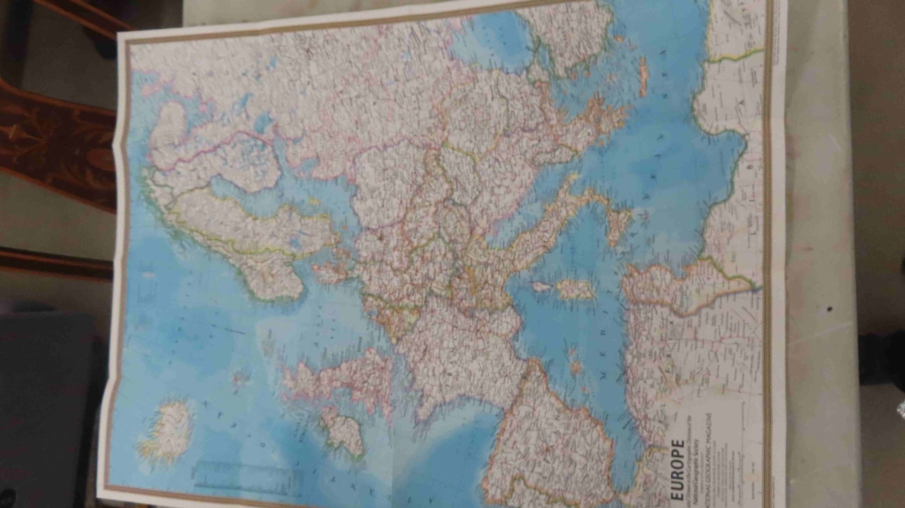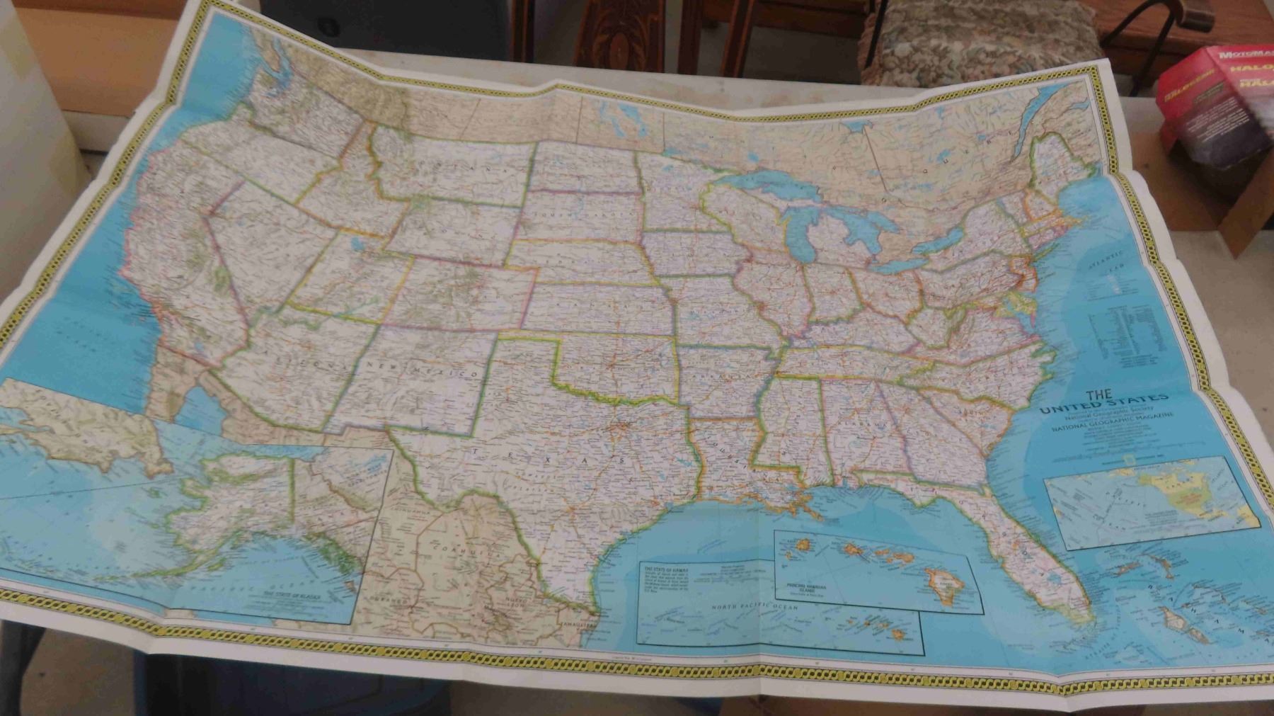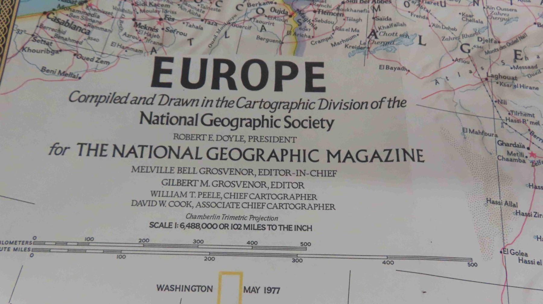 Box Full of National Geographic Magazines 1970s-90s , Maps of Europe and USA