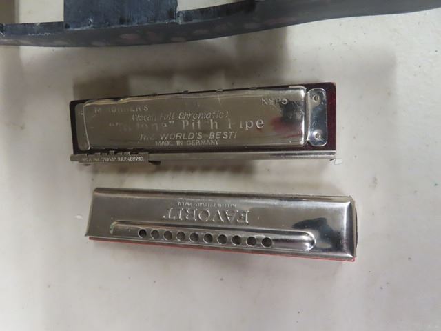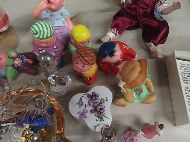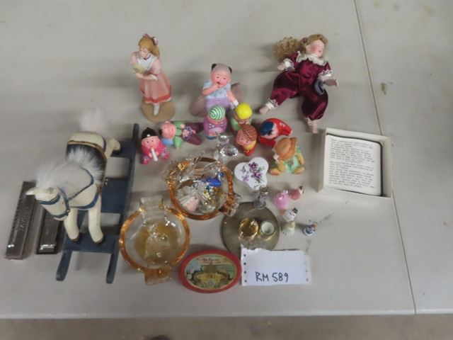 Box Lot of Figurines, Ornaments, Harmonicas