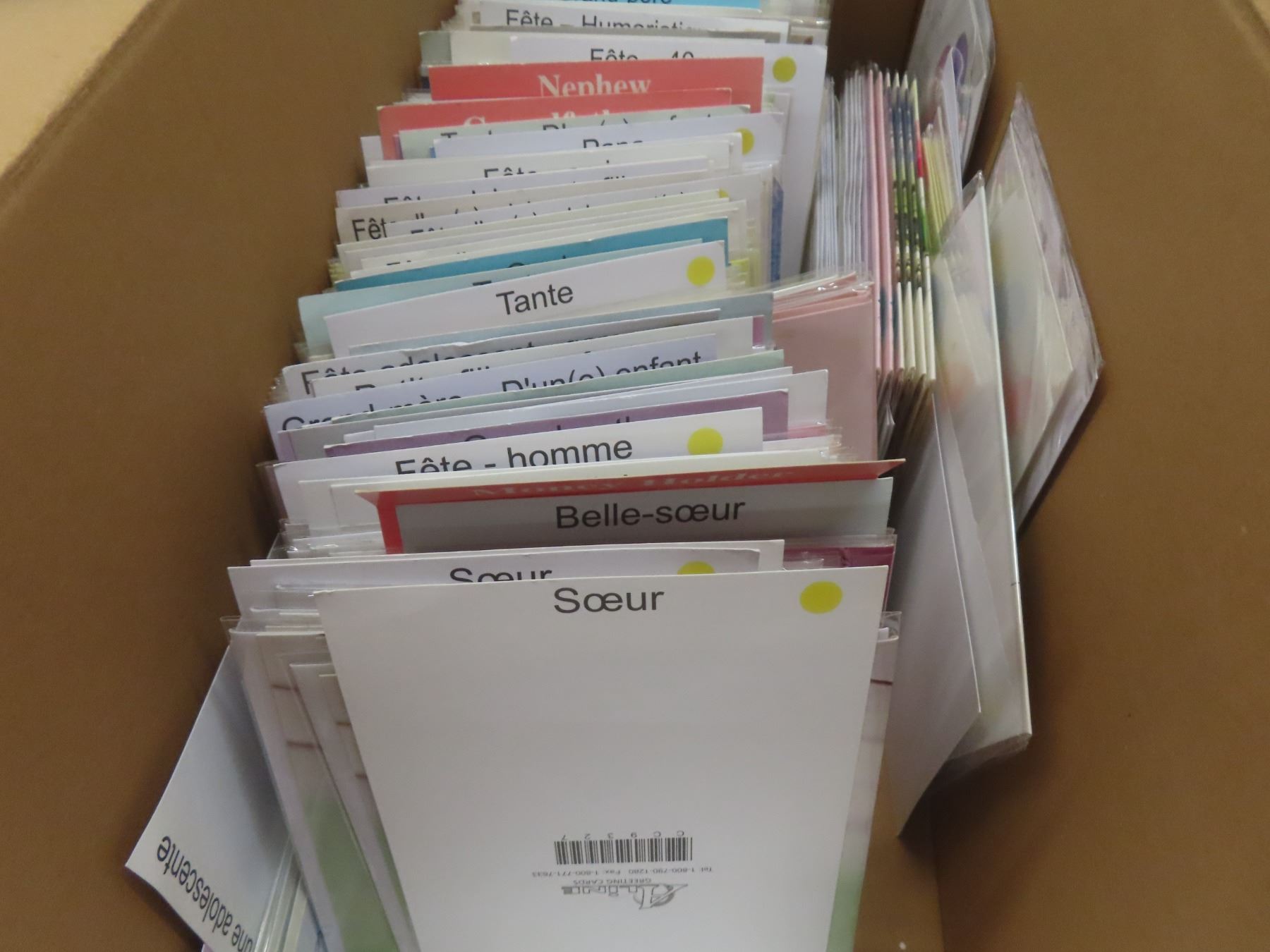 Box of 100's New All Occasion French Greeting Cards in Sealed Sleeves