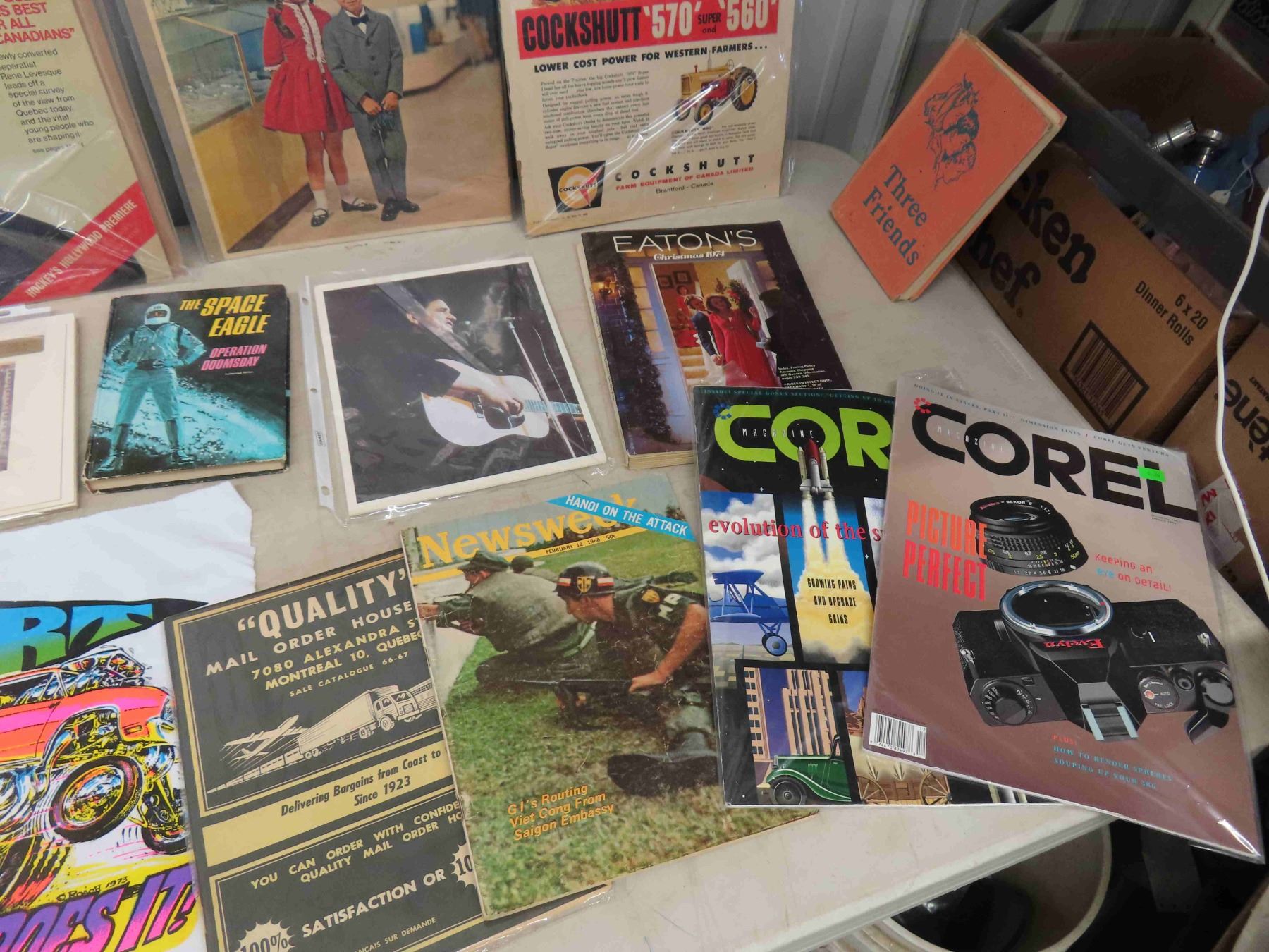 Box of Catalogs, Magazine Ads, Coasters, Books, CPR Book, Map, plus more
