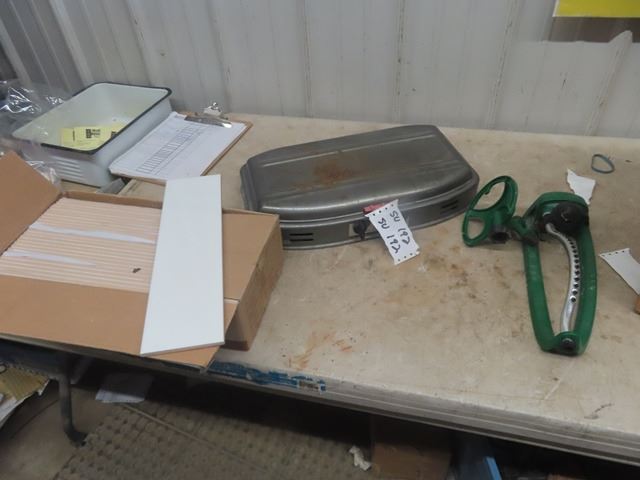 Box of Cermaic Tile, Coleman Stove, Sprinkler