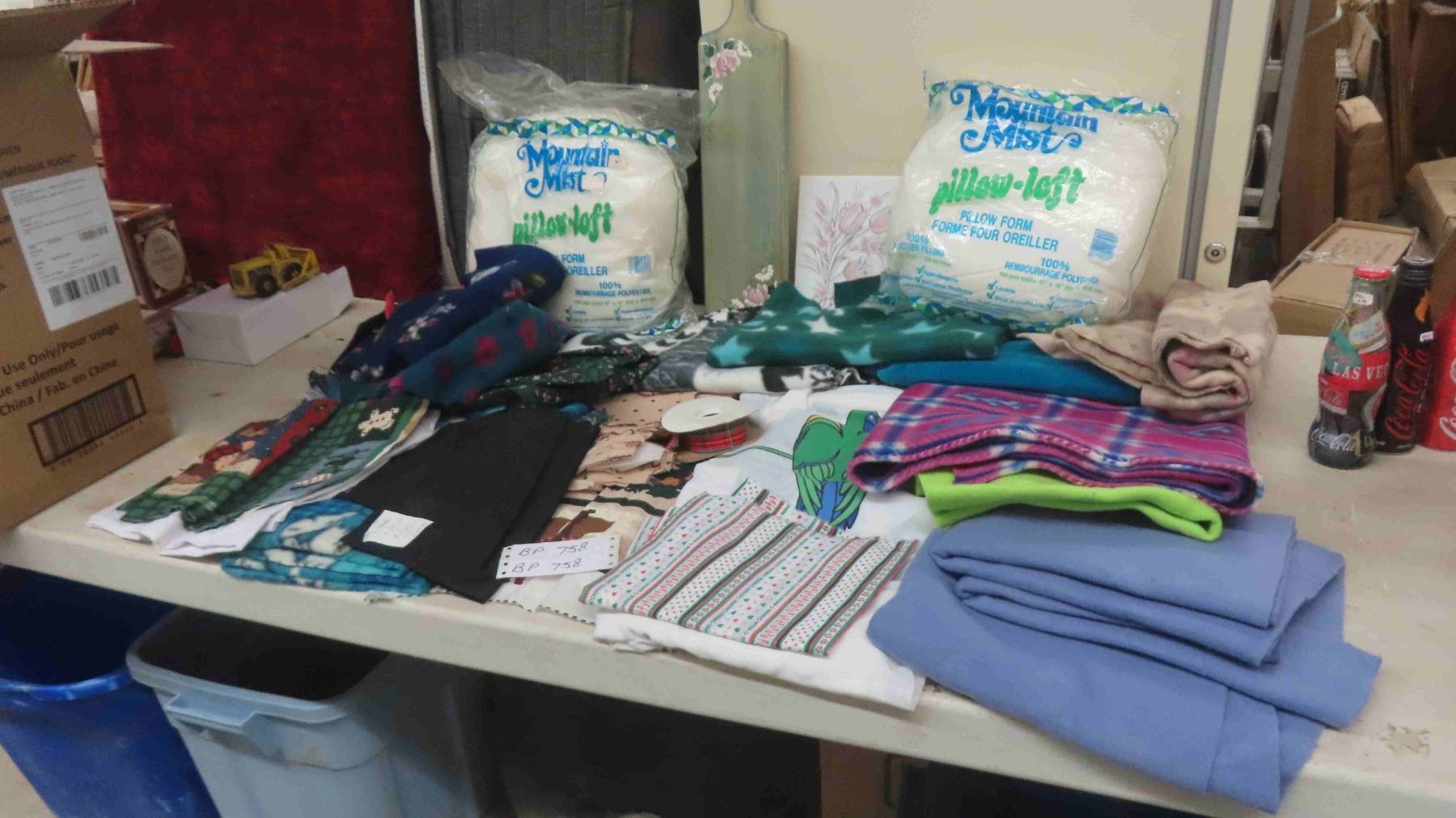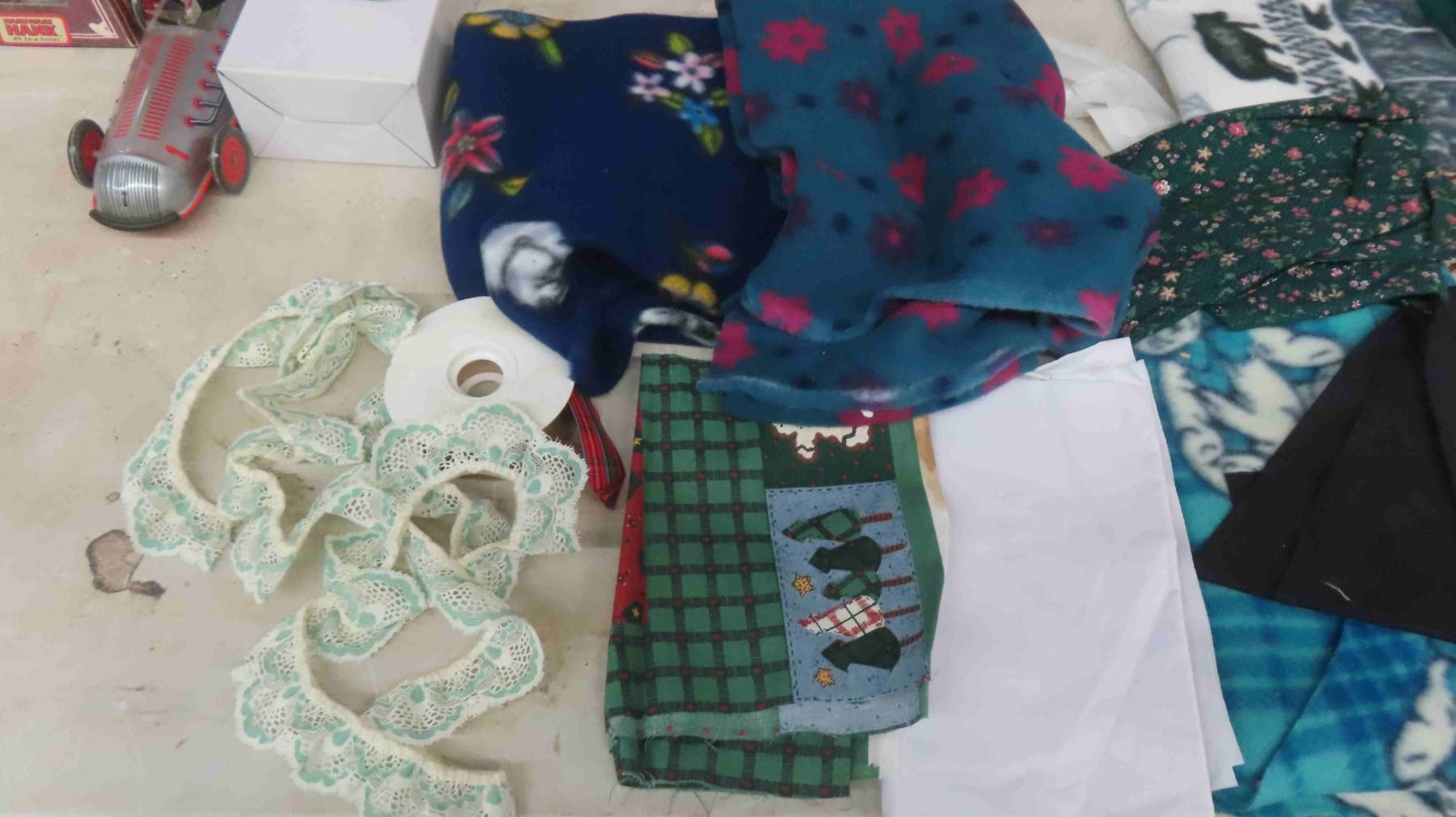 Box of Craft Supplies: Fabric, Lace, Trim, Stuffing & More