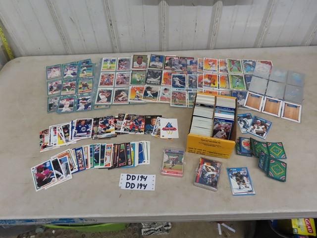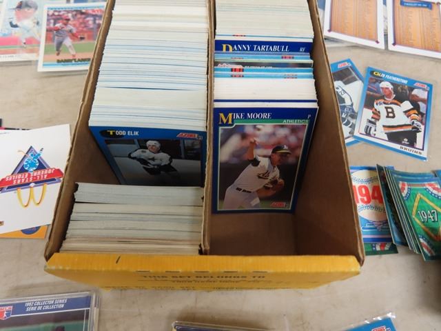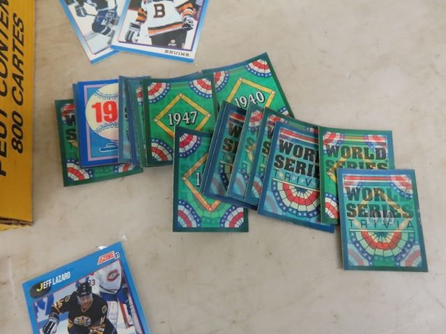 Box with Assorted Baseball + Hockey Cards - Pages for Binder with Baseball Cards - Mostly Early 1990's