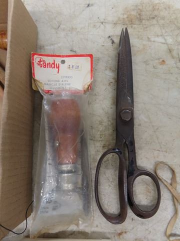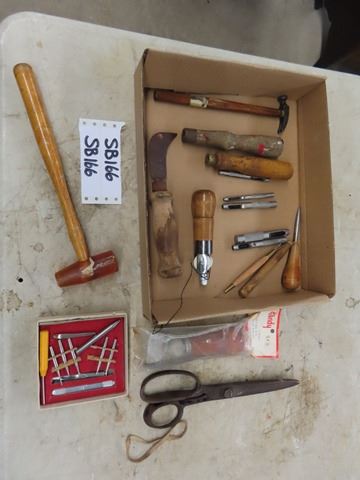 Box with Assorted Leather Working Tools ; Hammers, Scissors, Punches