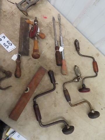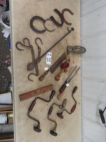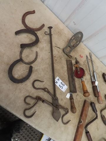 Brace Drills, Press Drills, Old Tools, Hide Scale Horse Shoes, Plus More!
