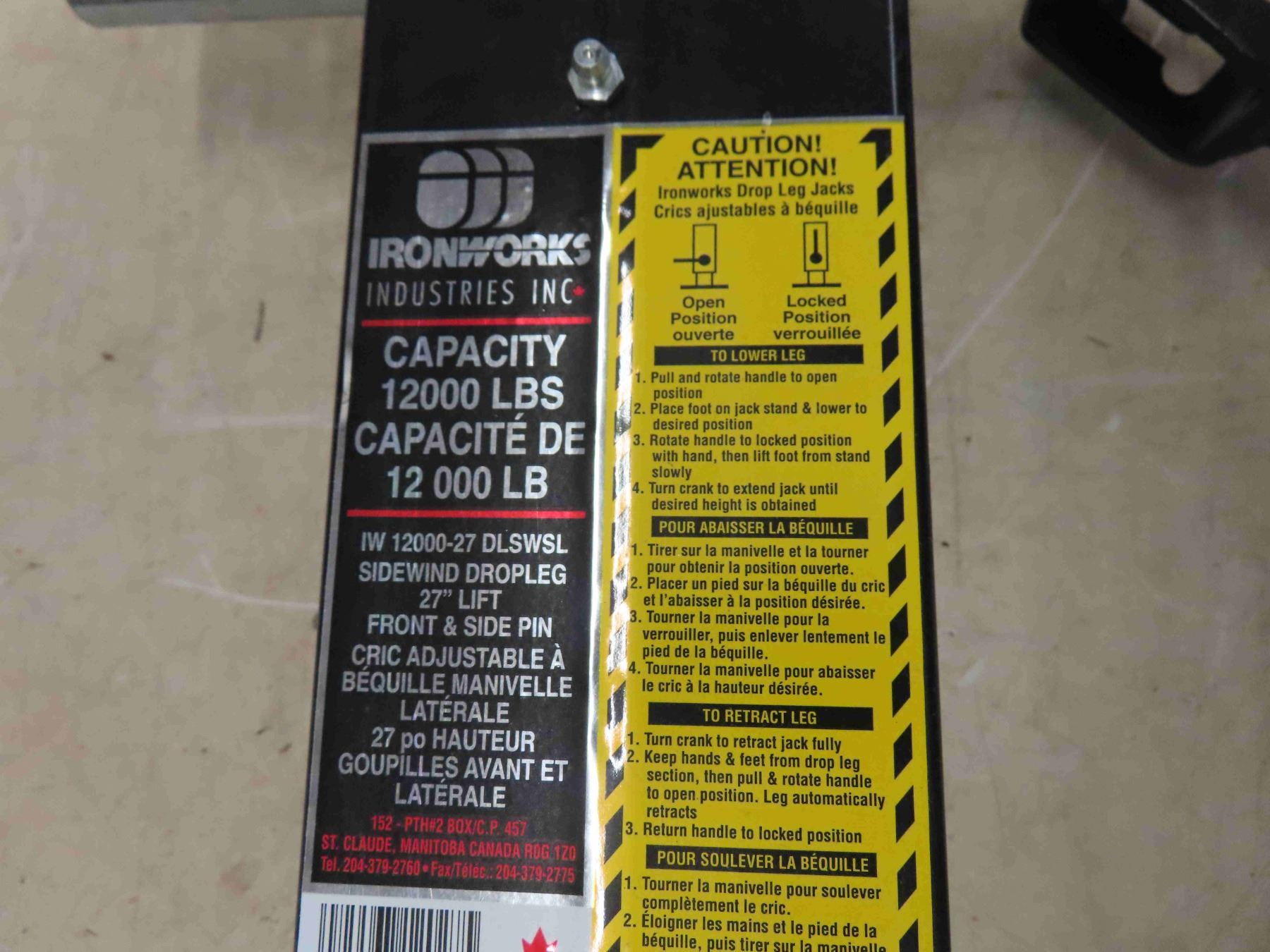 Brand New Iron Works 12000lb Side Wind Drop leg 27" Lift - Trailer Jack