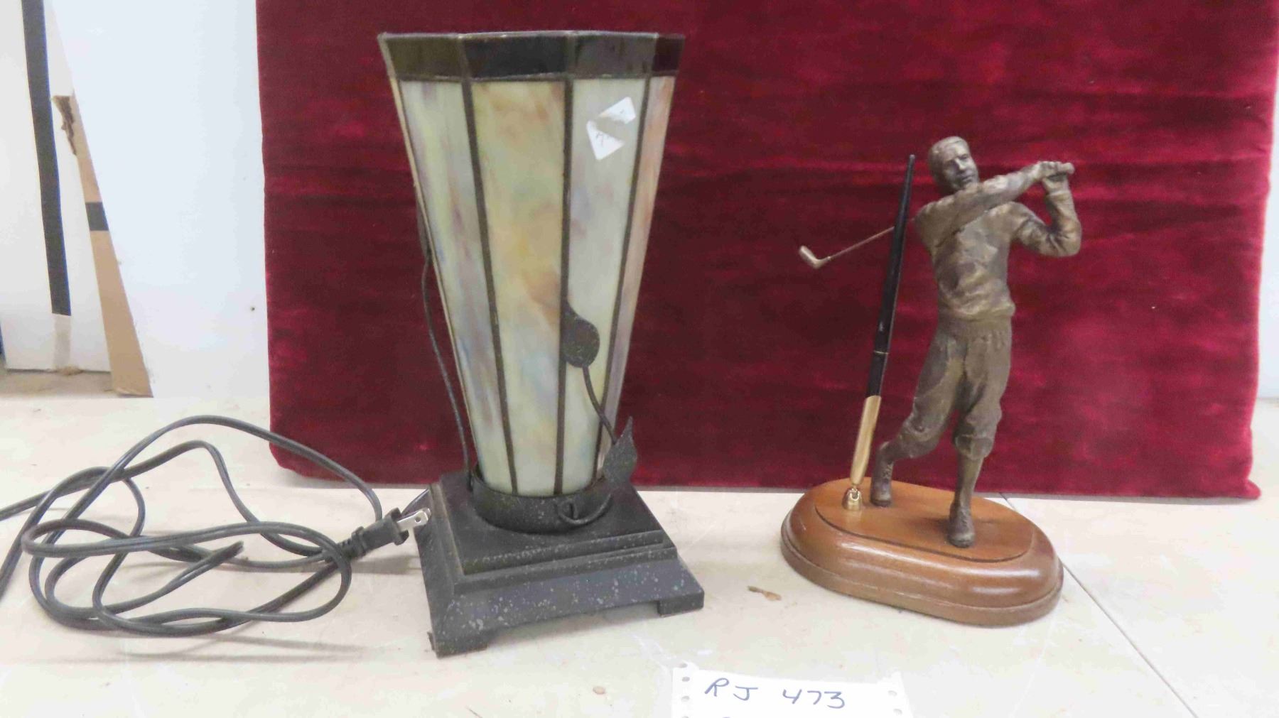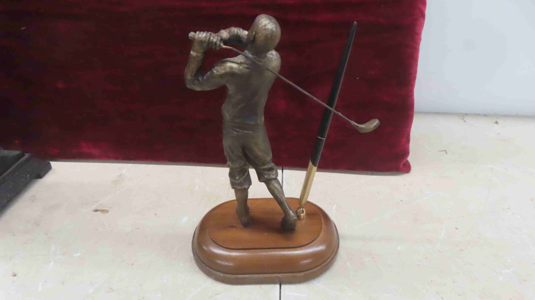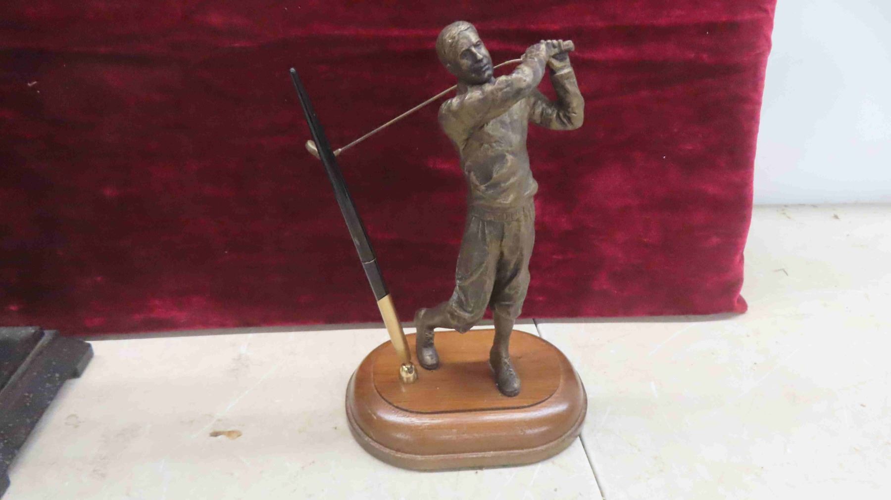 Brass Golfer Pen Set 10'' H , Lamp with Pearl Style Finish Shade