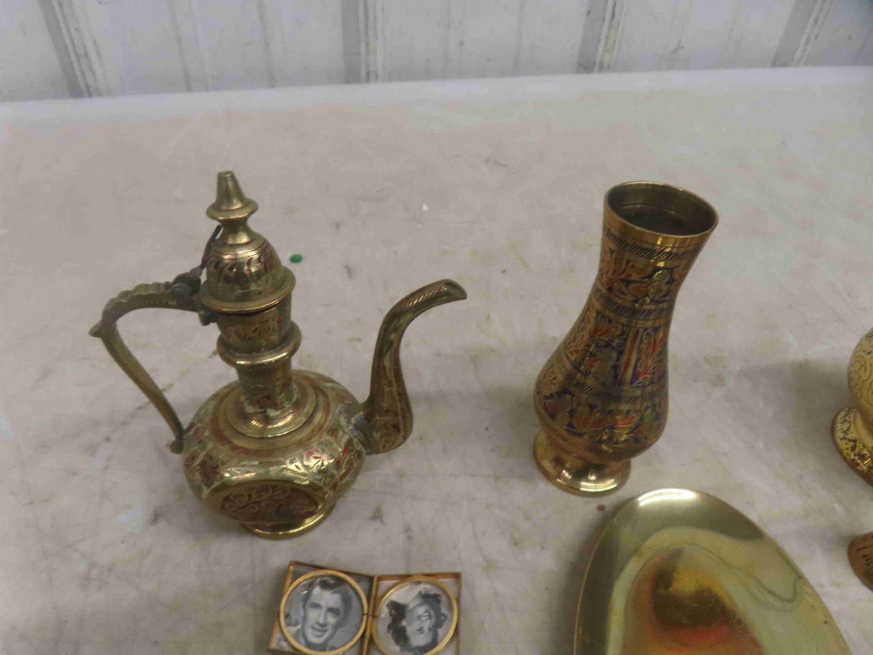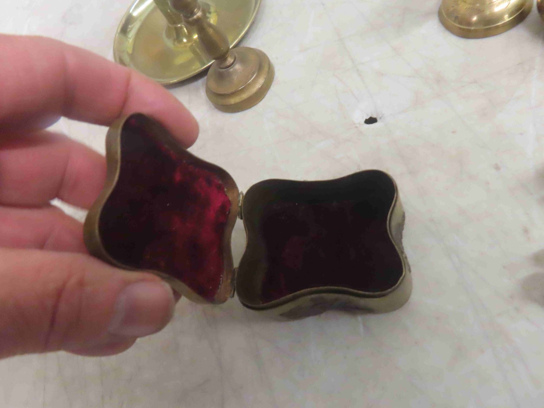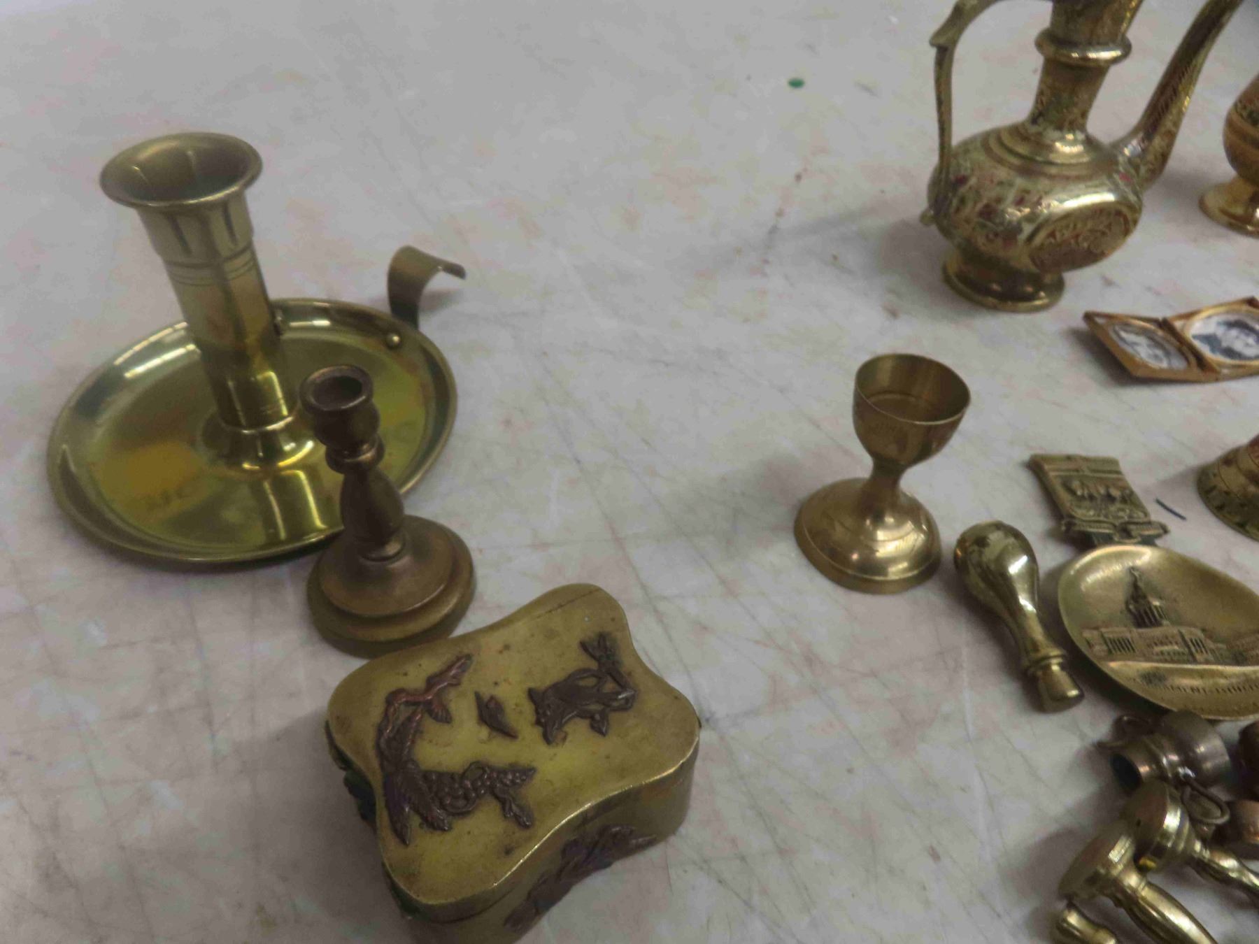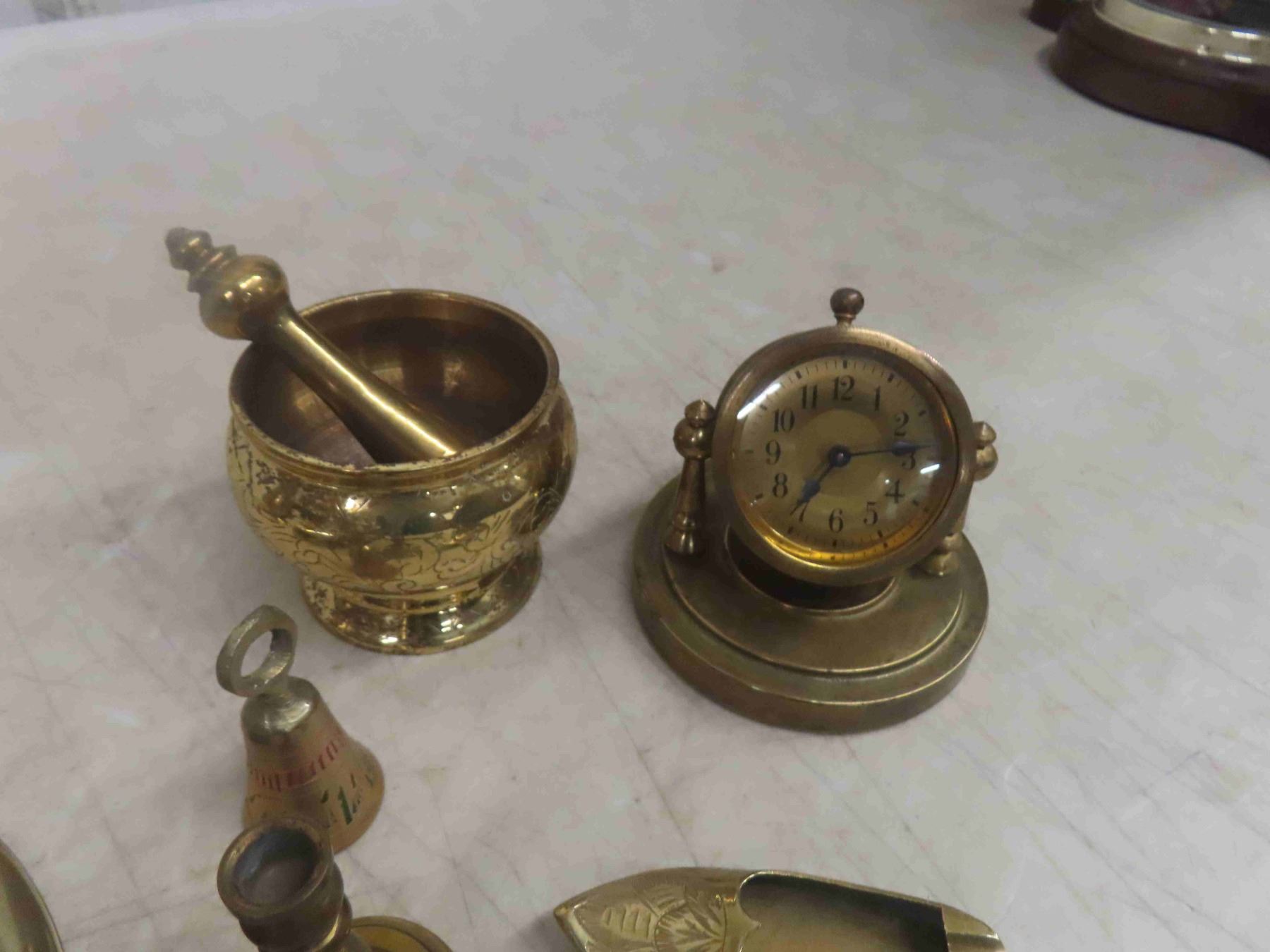 Brass Items: Clock, Mini Ornaments, Candliers, Trinklet Box, Letter