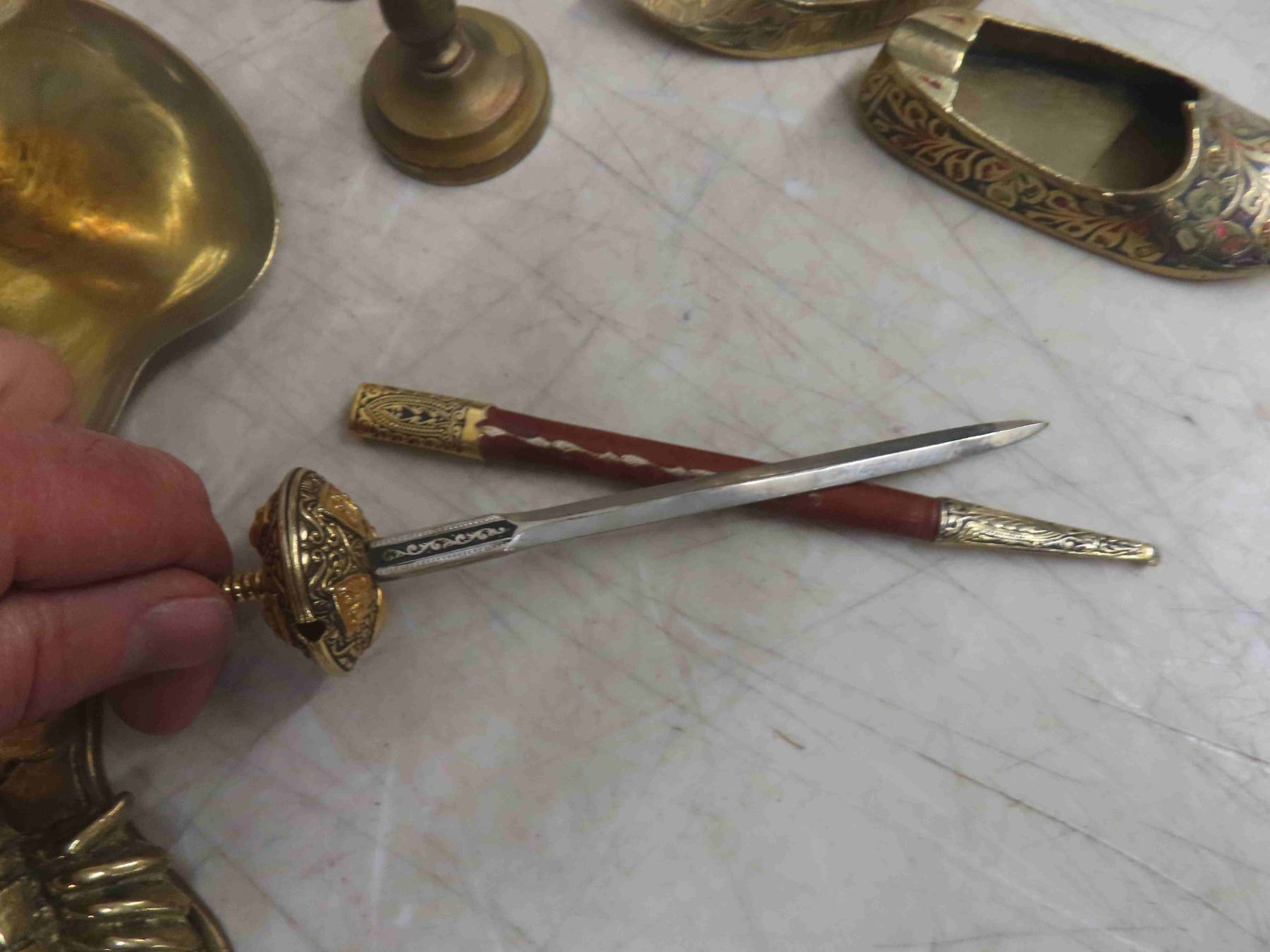 Brass Items: Clock, Mini Ornaments, Candliers, Trinklet Box, Letter Opener & More