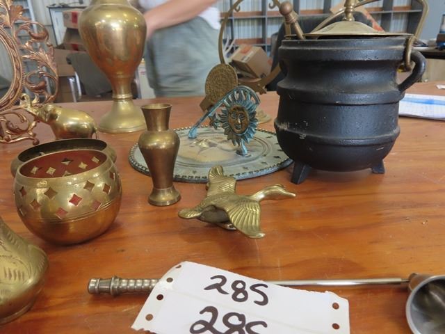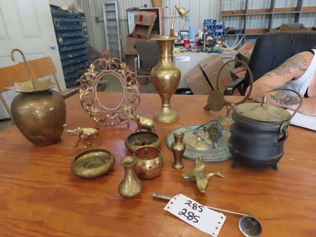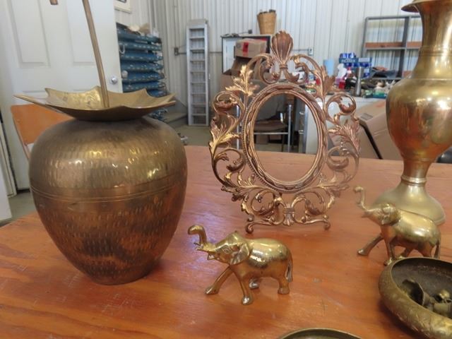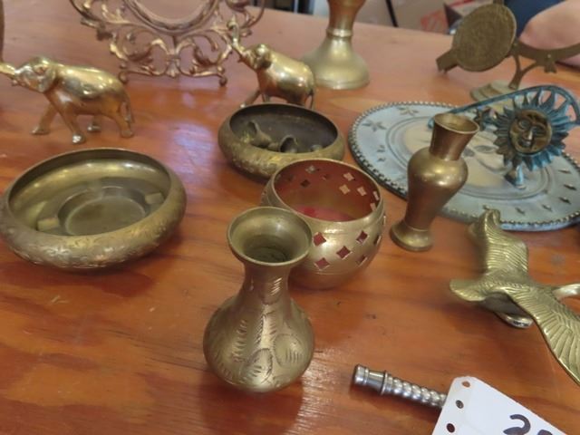 Brass Ornaments; Sun Dial, Gong, Picture Frame, Voses, Duck Door Knocker, Elephants