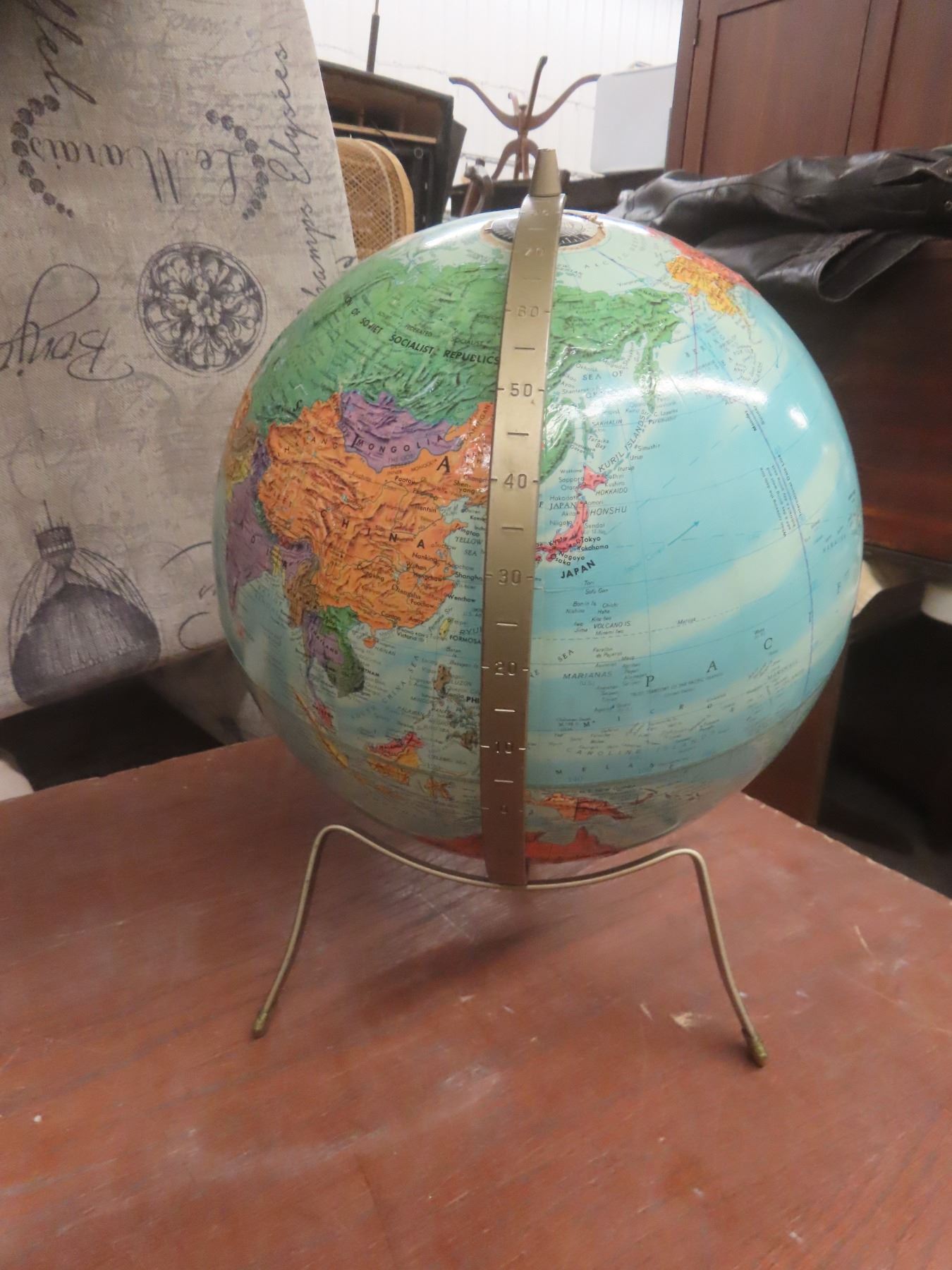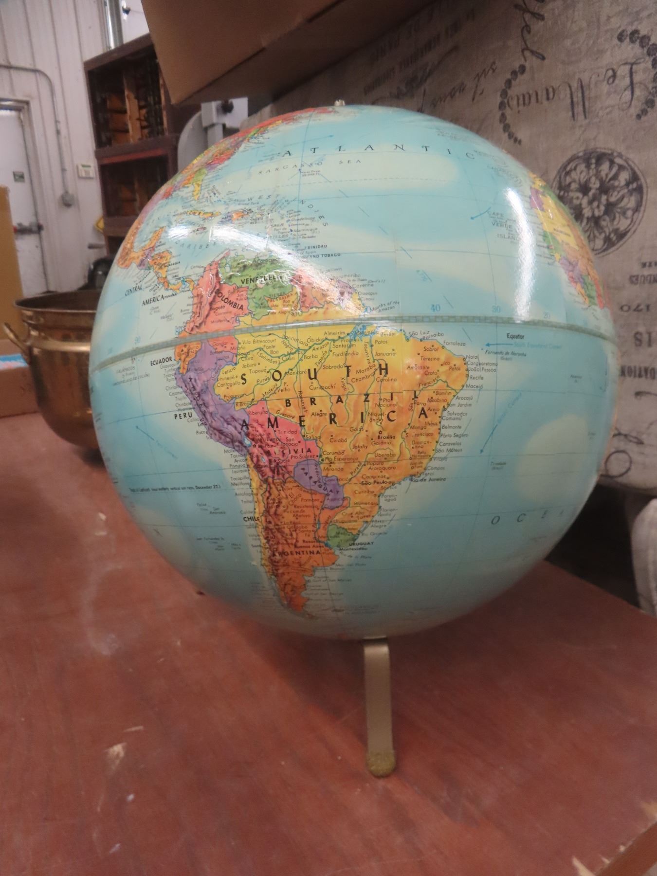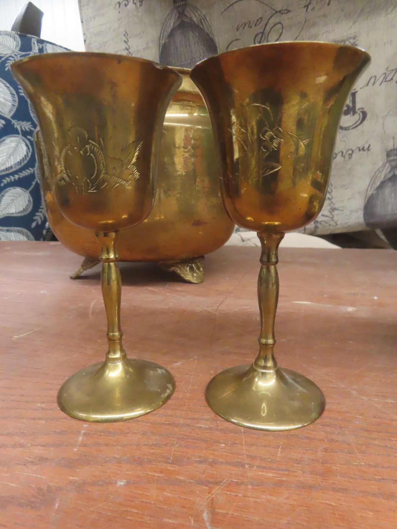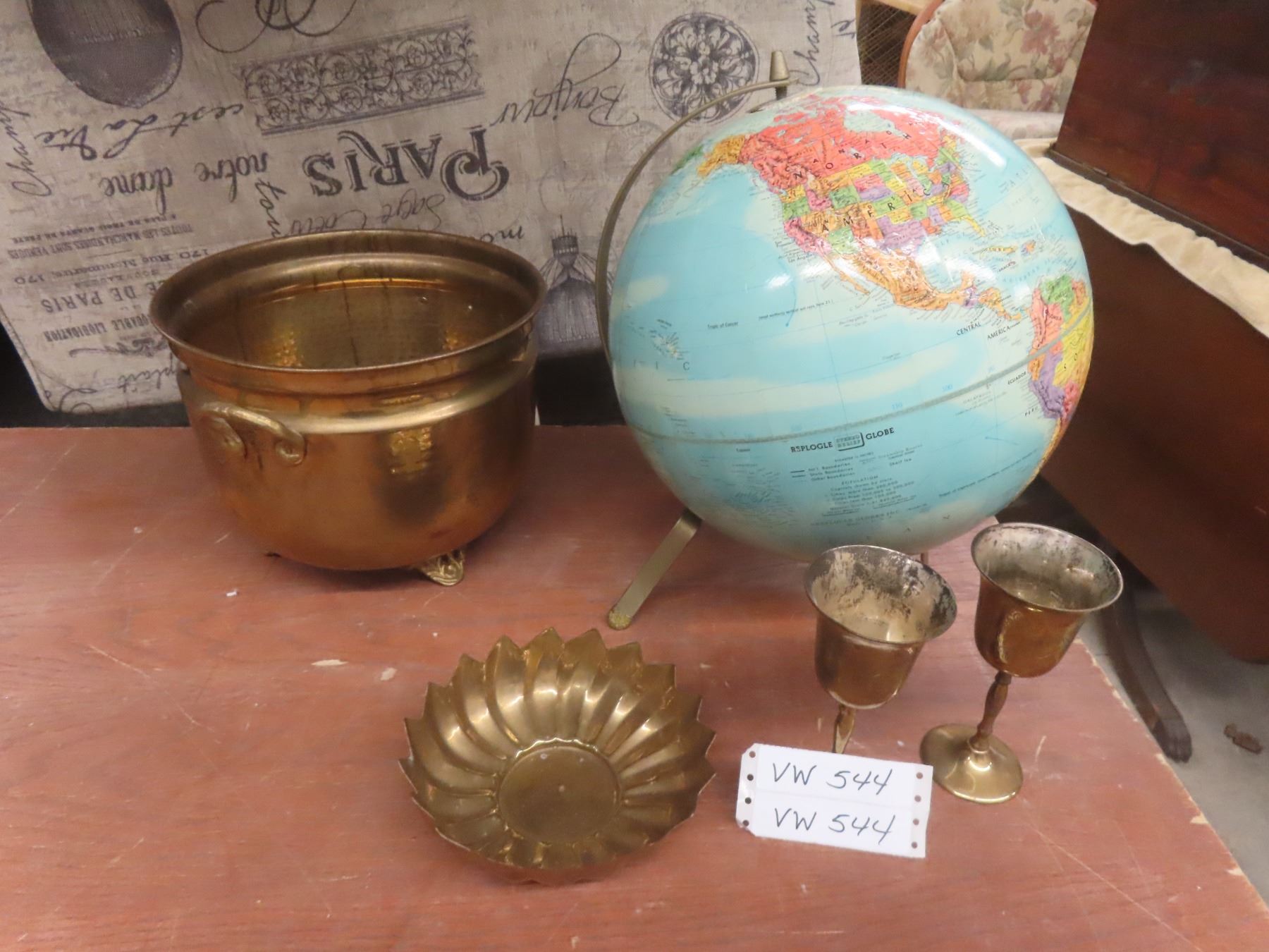 Brass Planter, Goblets, Candy Dish, And A World Globe.