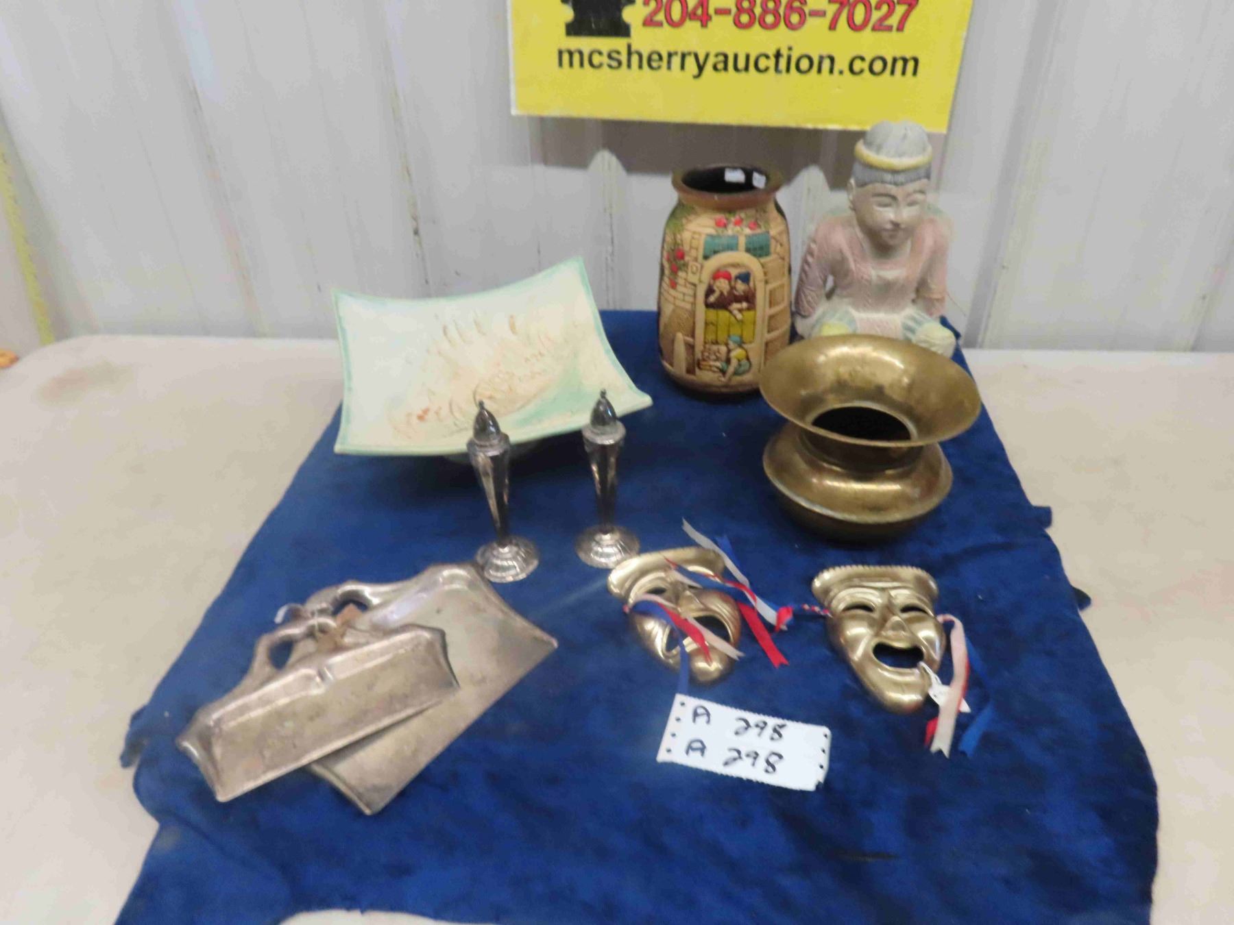 Brass Spittoon, Crumb Duster, 1933 Vase- type of ceramic or pottery, plus more
