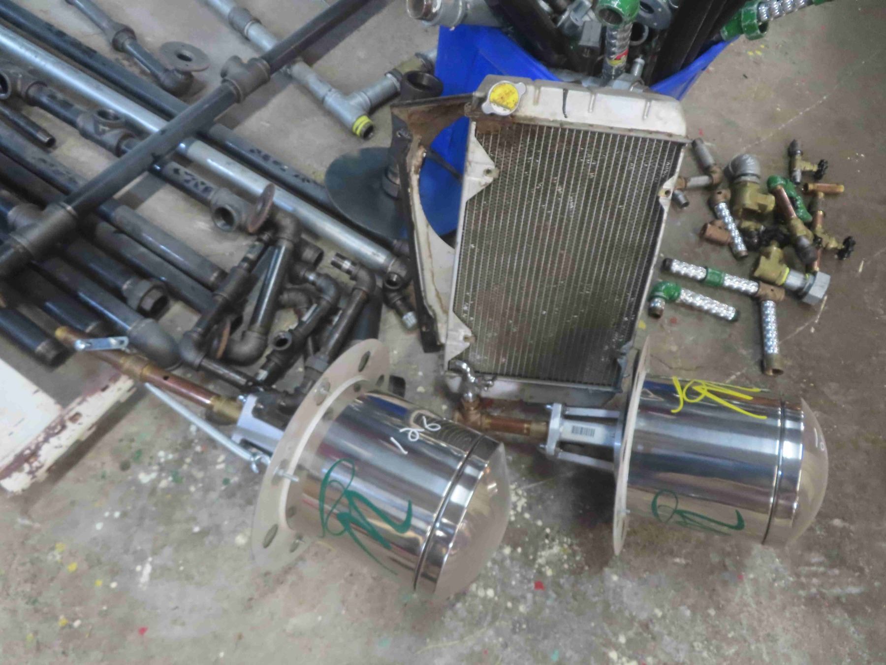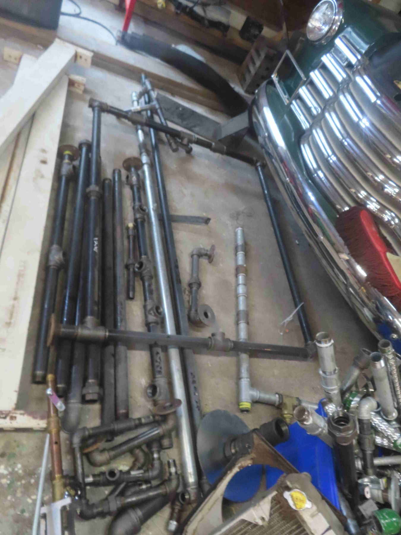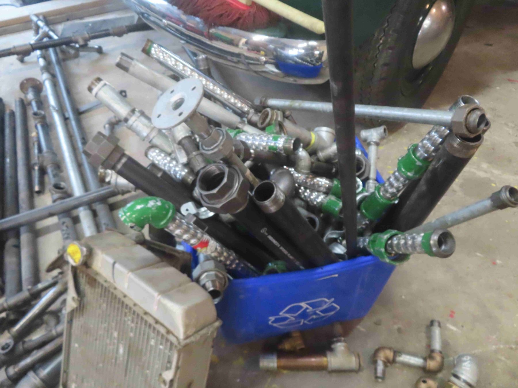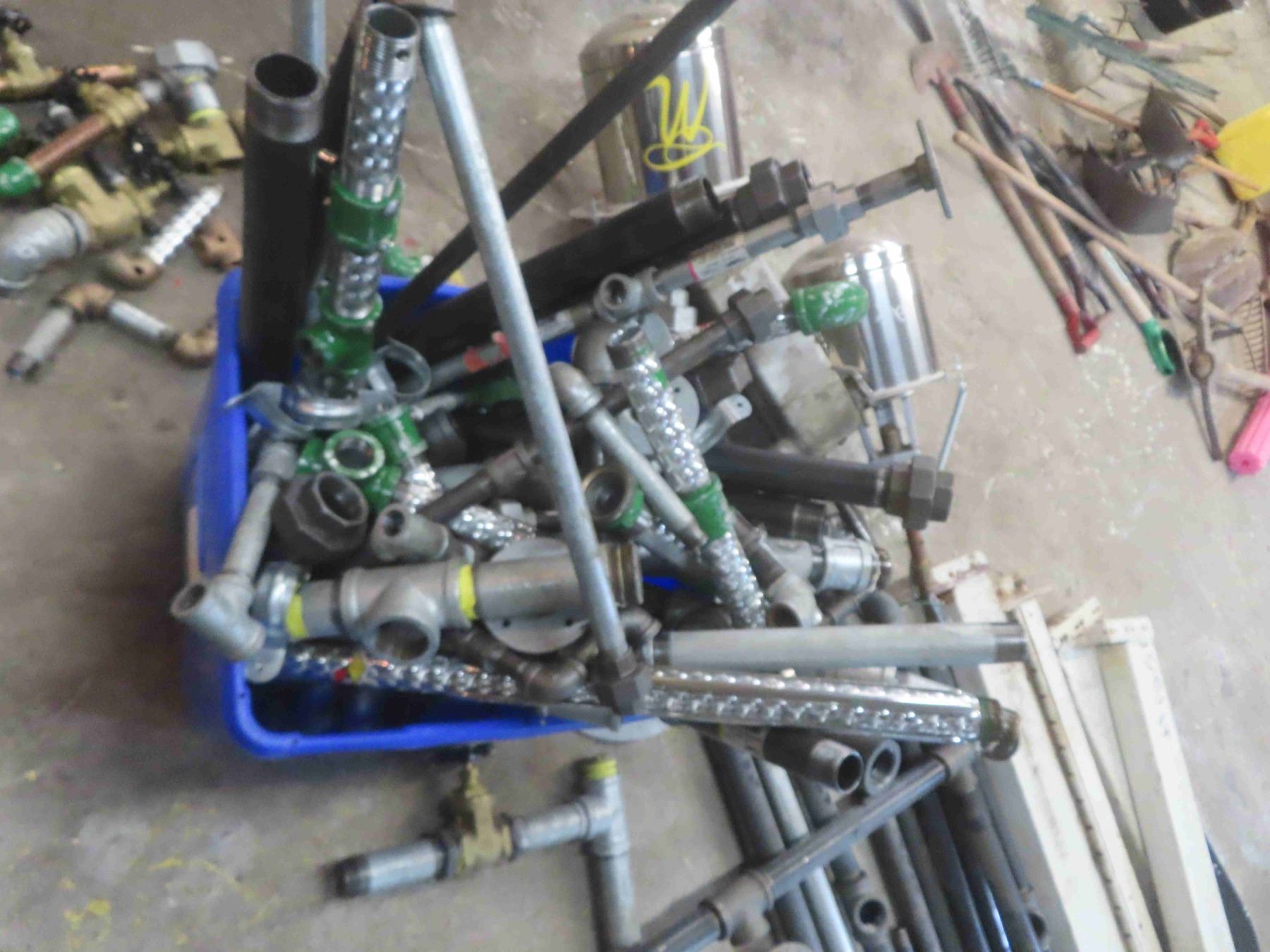 Brass and Cast Fittings, Pipes, Taps, Small Radiator