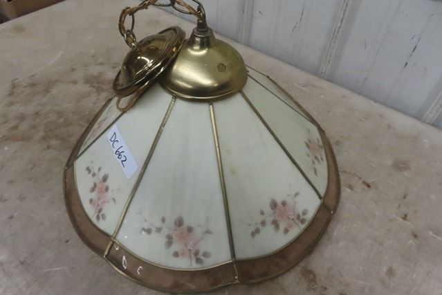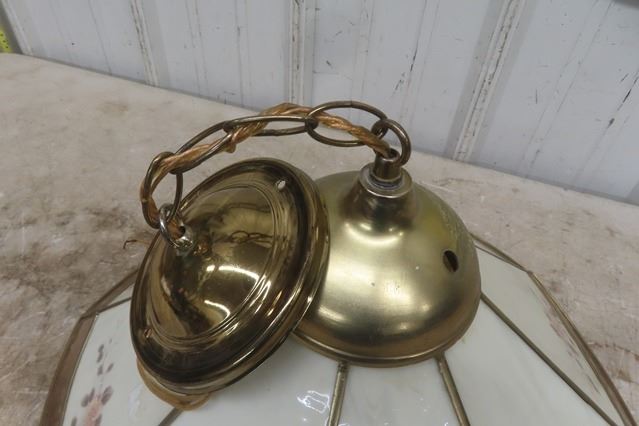 Brass with Glass Panels Hanging Lamp 18" Wide