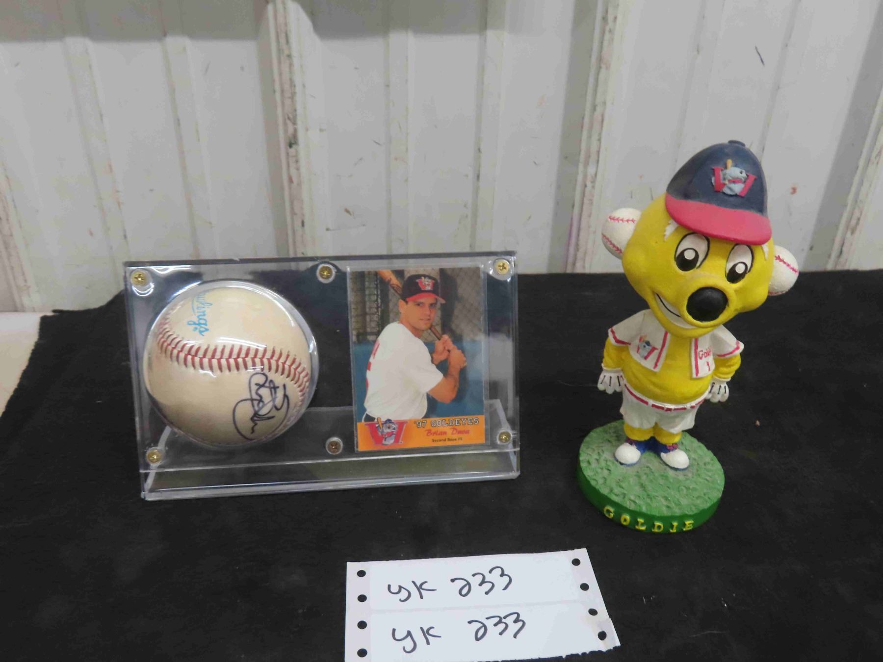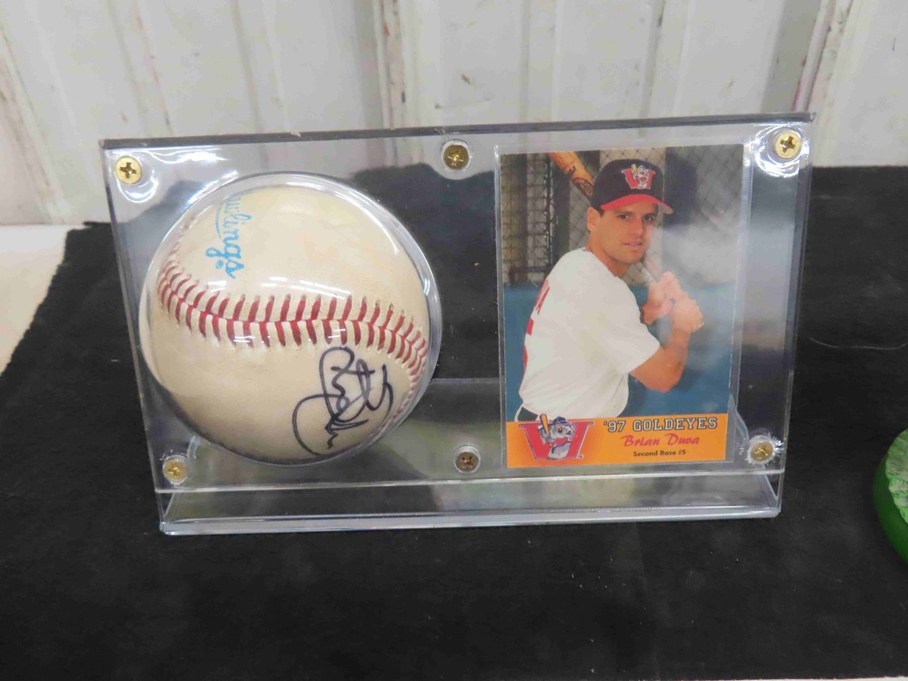 Brian Duva Winnipeg Goldeyes Autographed Game Ball and Card Display + Goldie Bobblehead