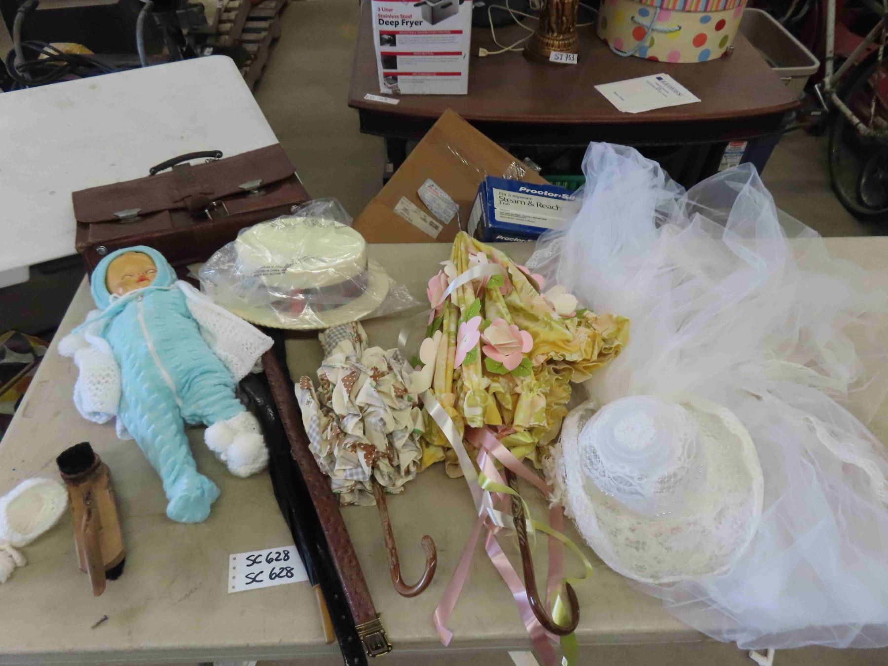 Bridal Hat + Veil, Fancy Umbrellas, Baby Doll, Leather Bag, Belts