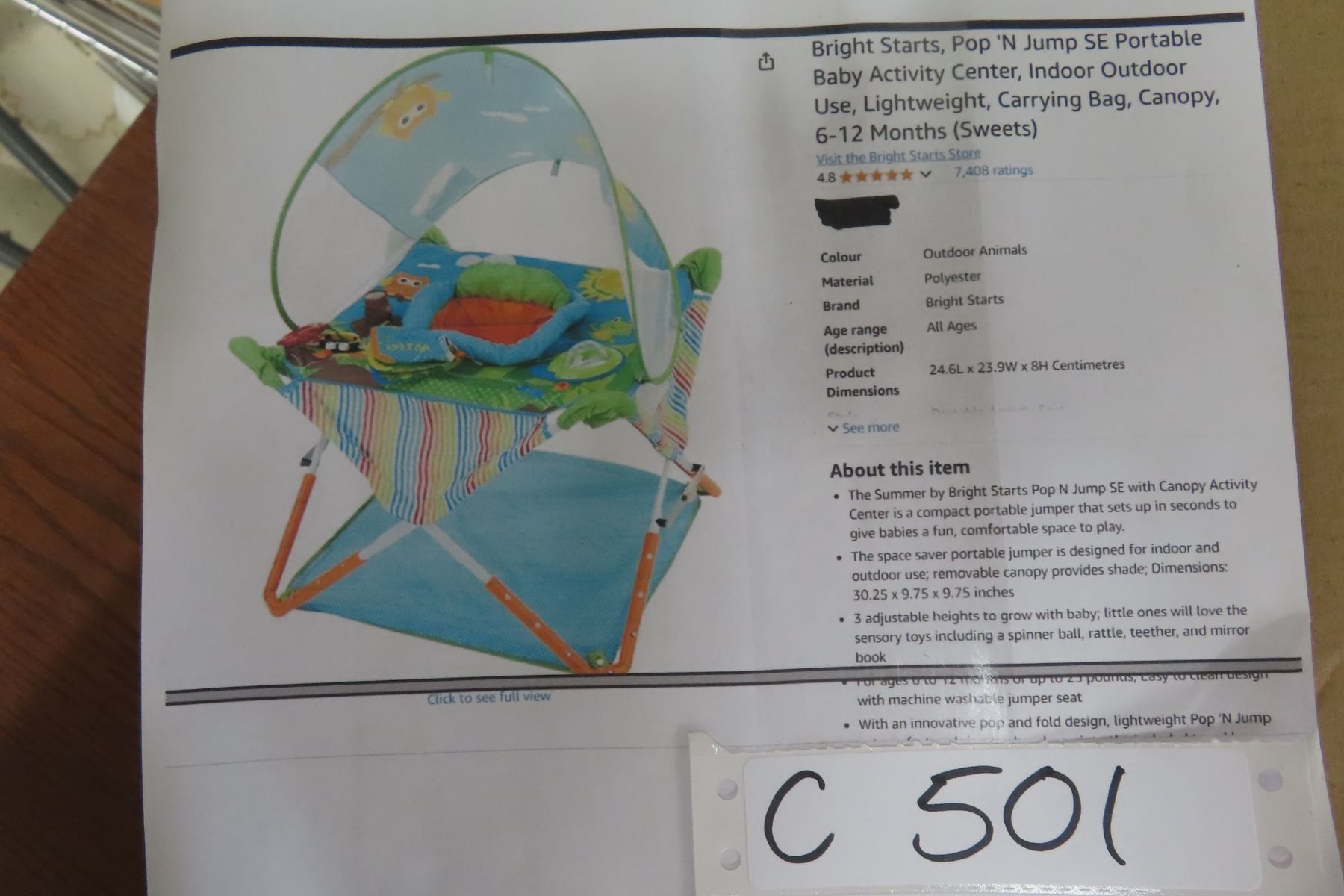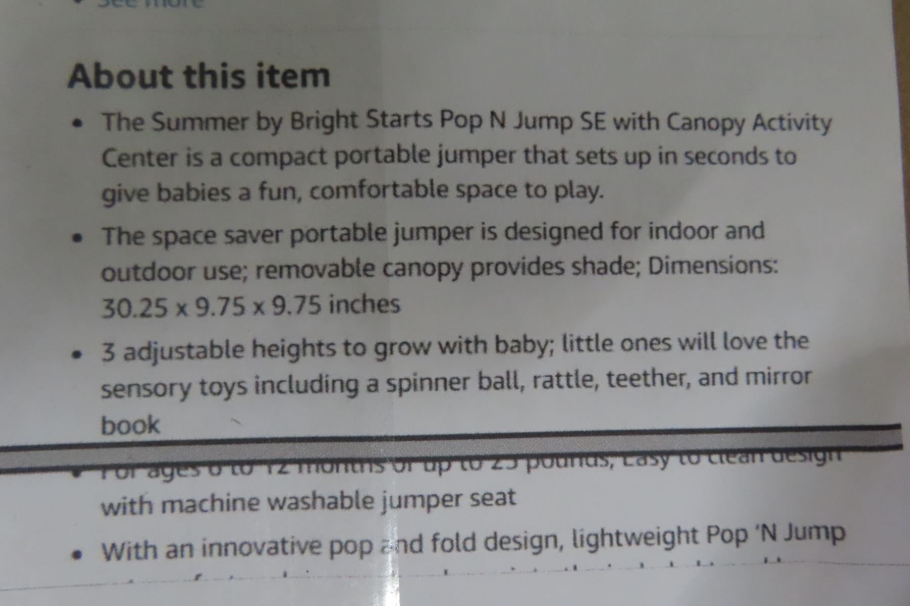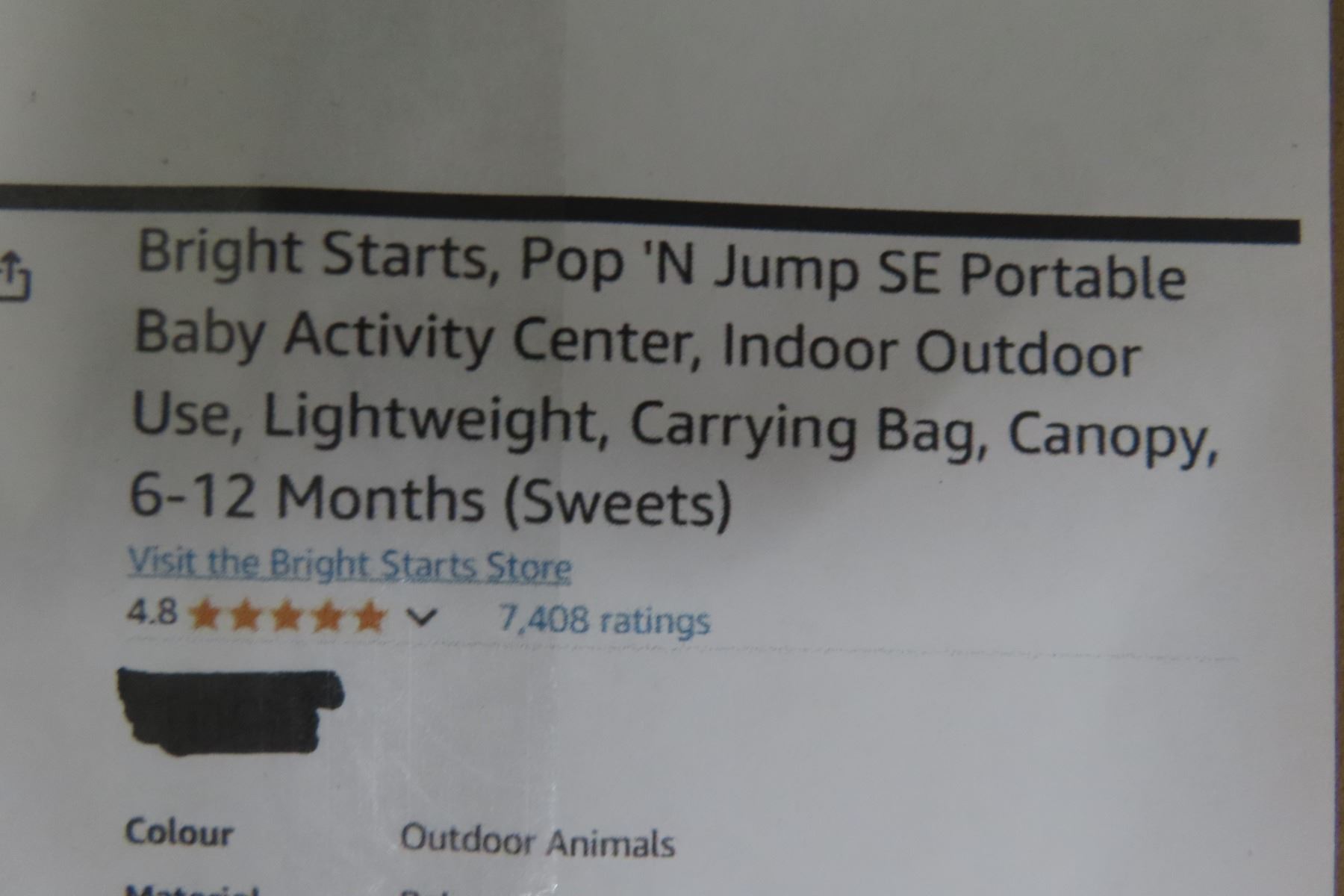 Bright Starts PopNJump SE Portable Activity Center, Indoor/ Outdoor use, Carrying Bag, Canopy, 6-12Months- New or Store Return