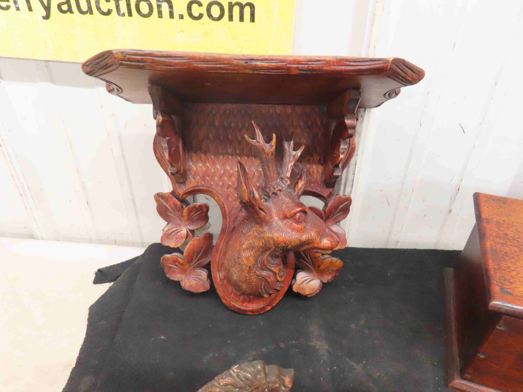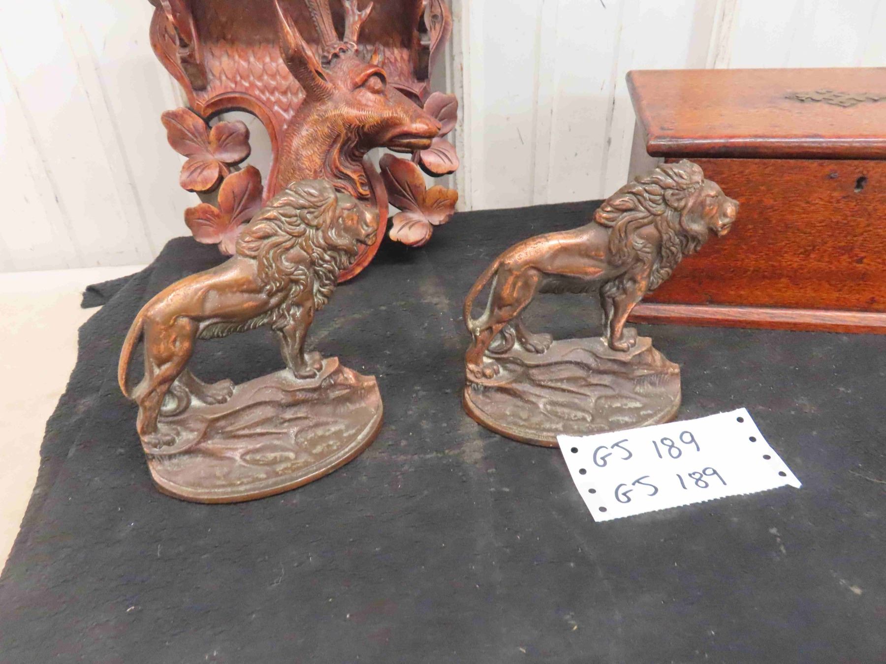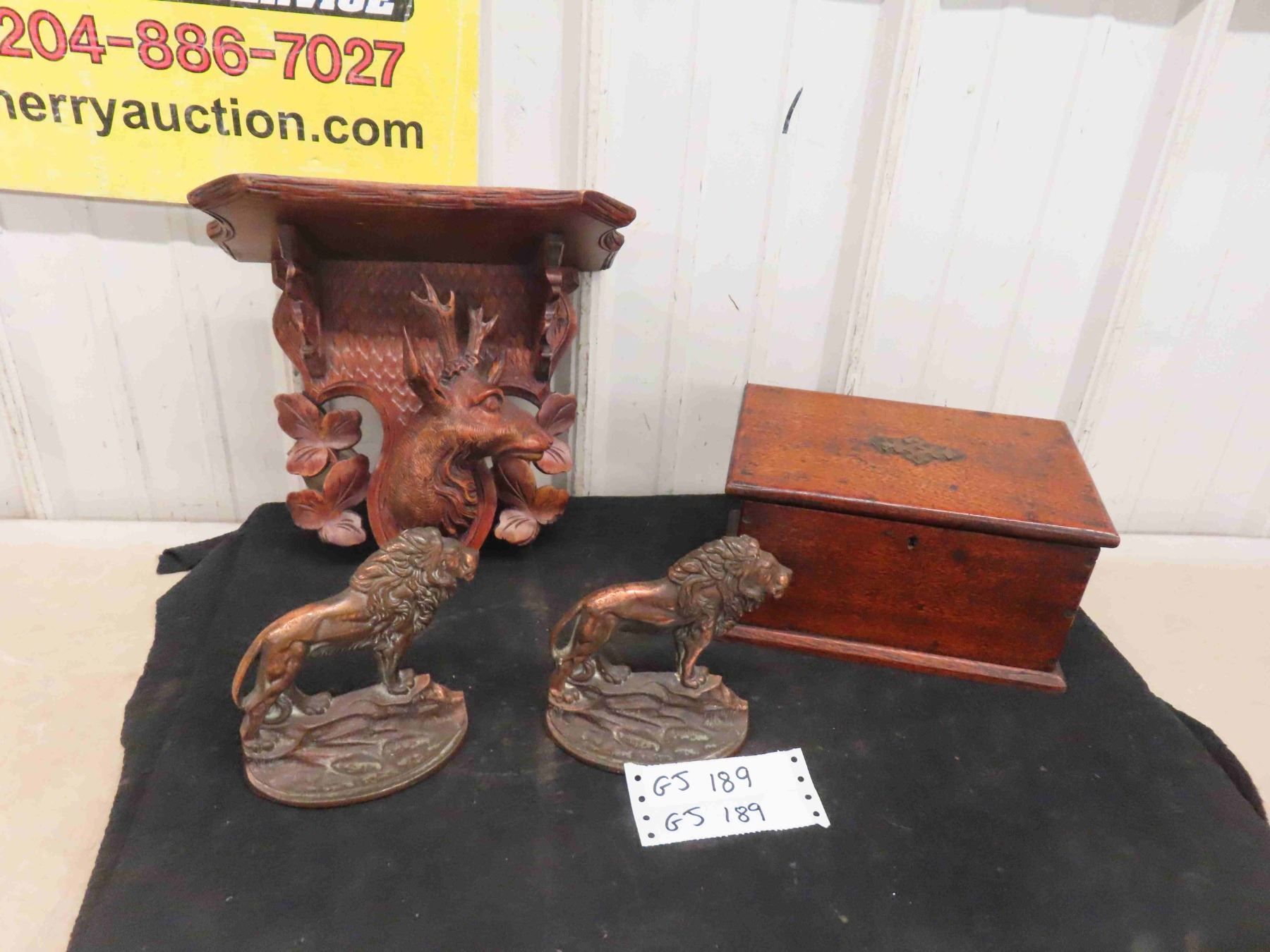 Bronze Lion Book Ends , Document Box, Ornate Shelf with Deer Head