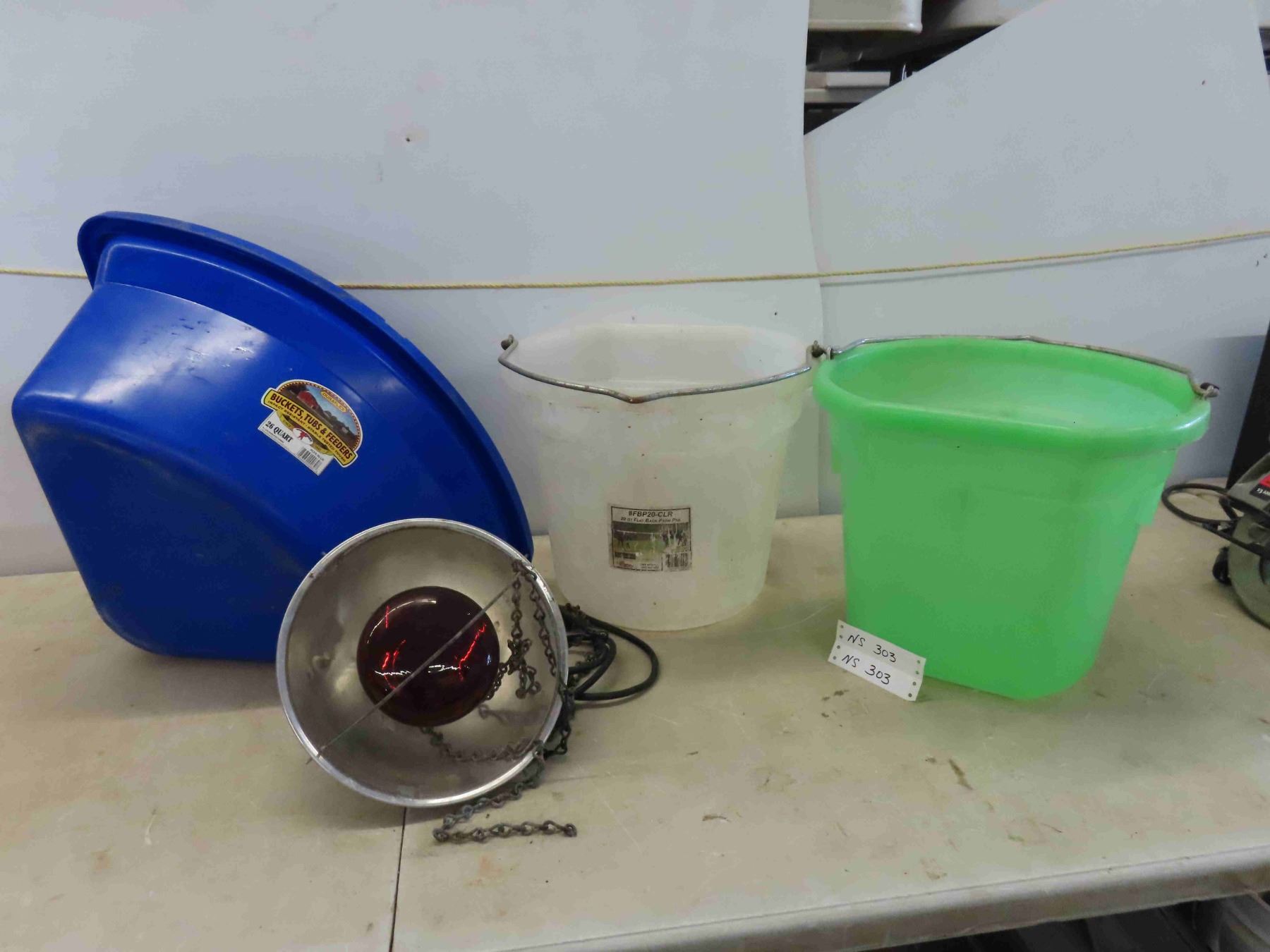 Brooder Lamp/Heater , 2 Flat Back/Arm Pails, 26 Quart Feeder