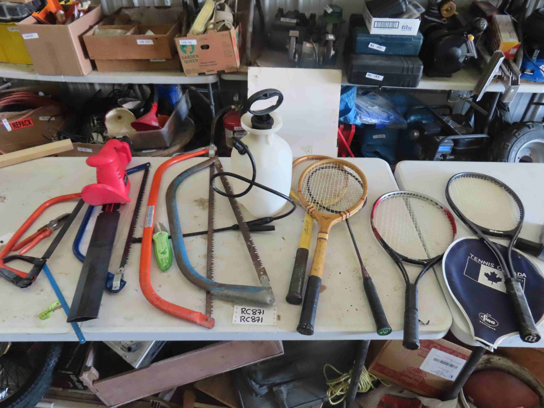 Buck Saws, Sprayer, Hedge Trimmers, Tennis Rackets