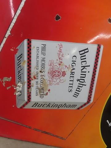 Buckingham Cigarettes Large Porcelain Sign with Smoke Pack - Great Colors! 58" x 94"