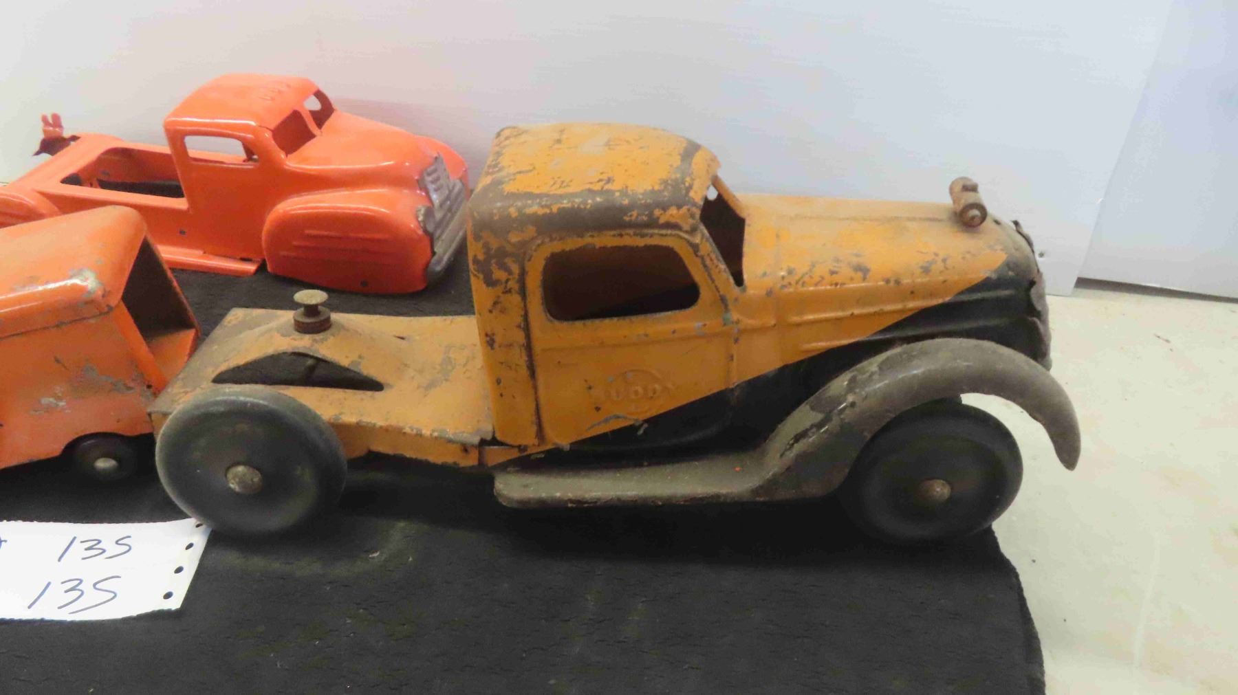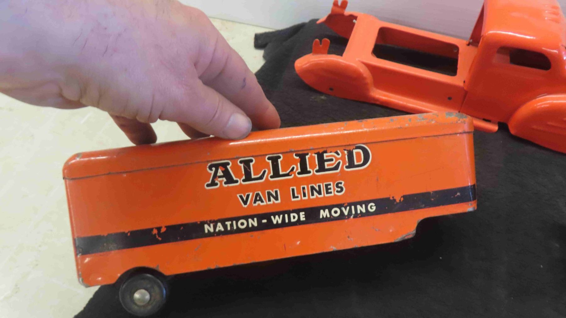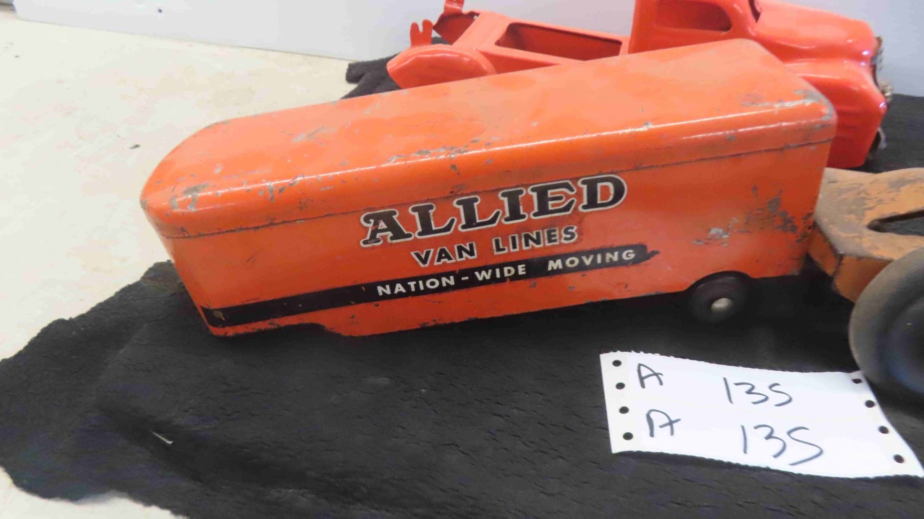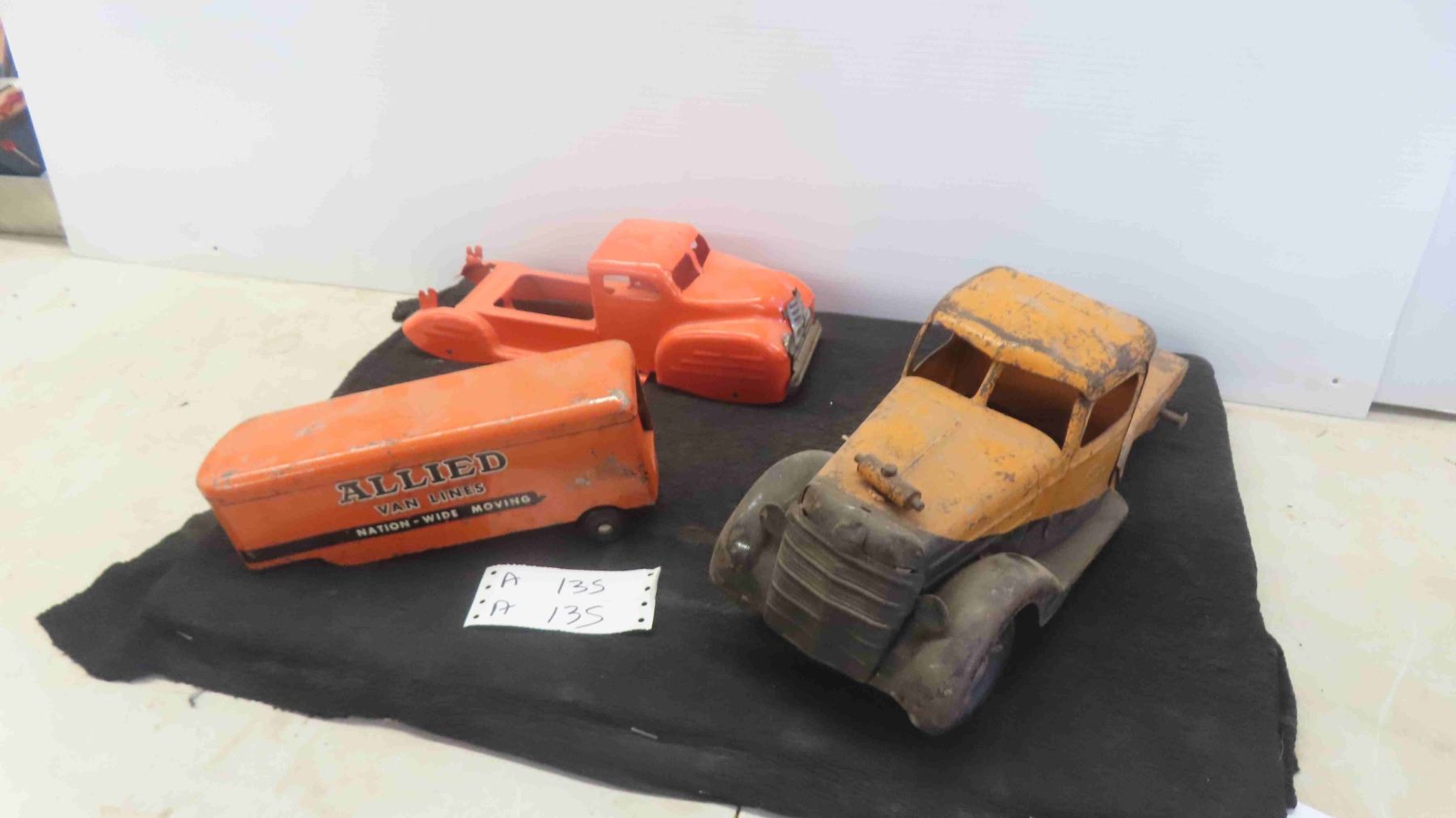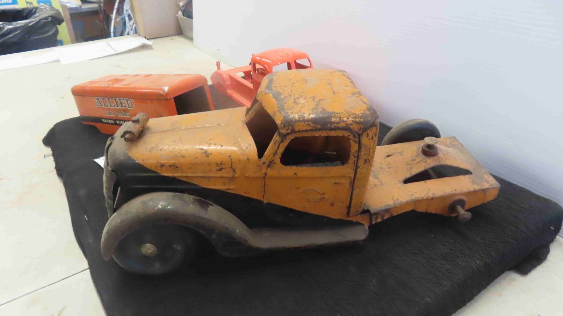 Buddy L Pressed Metal Truck (Missing 1 Wheel), Lincoln Pressed Metal Truck (No Wheels or Box), Metal Allied Trailer